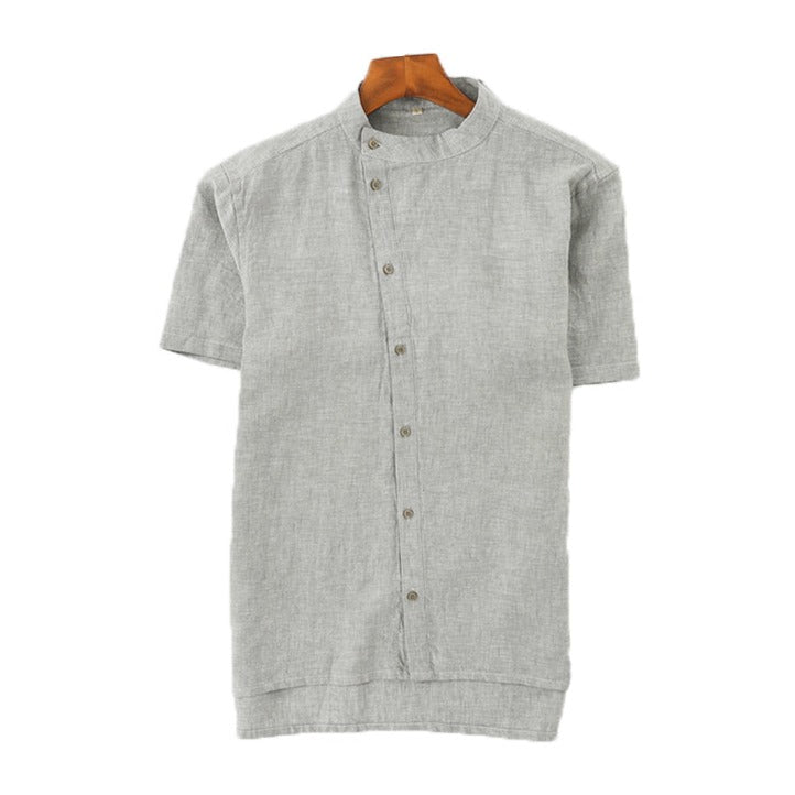 Men's 100% Linen Casual Stand Collar Henley Shirt B012