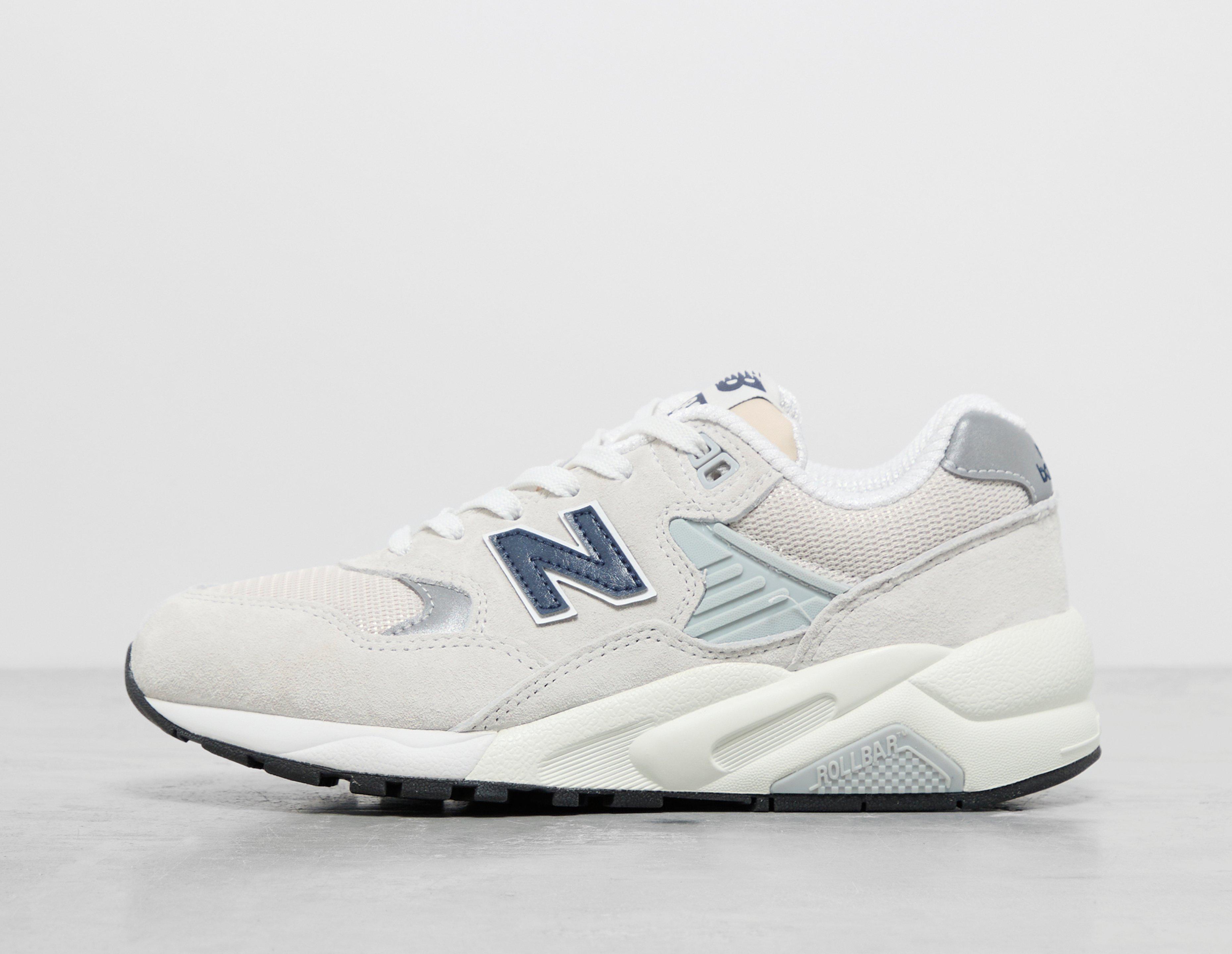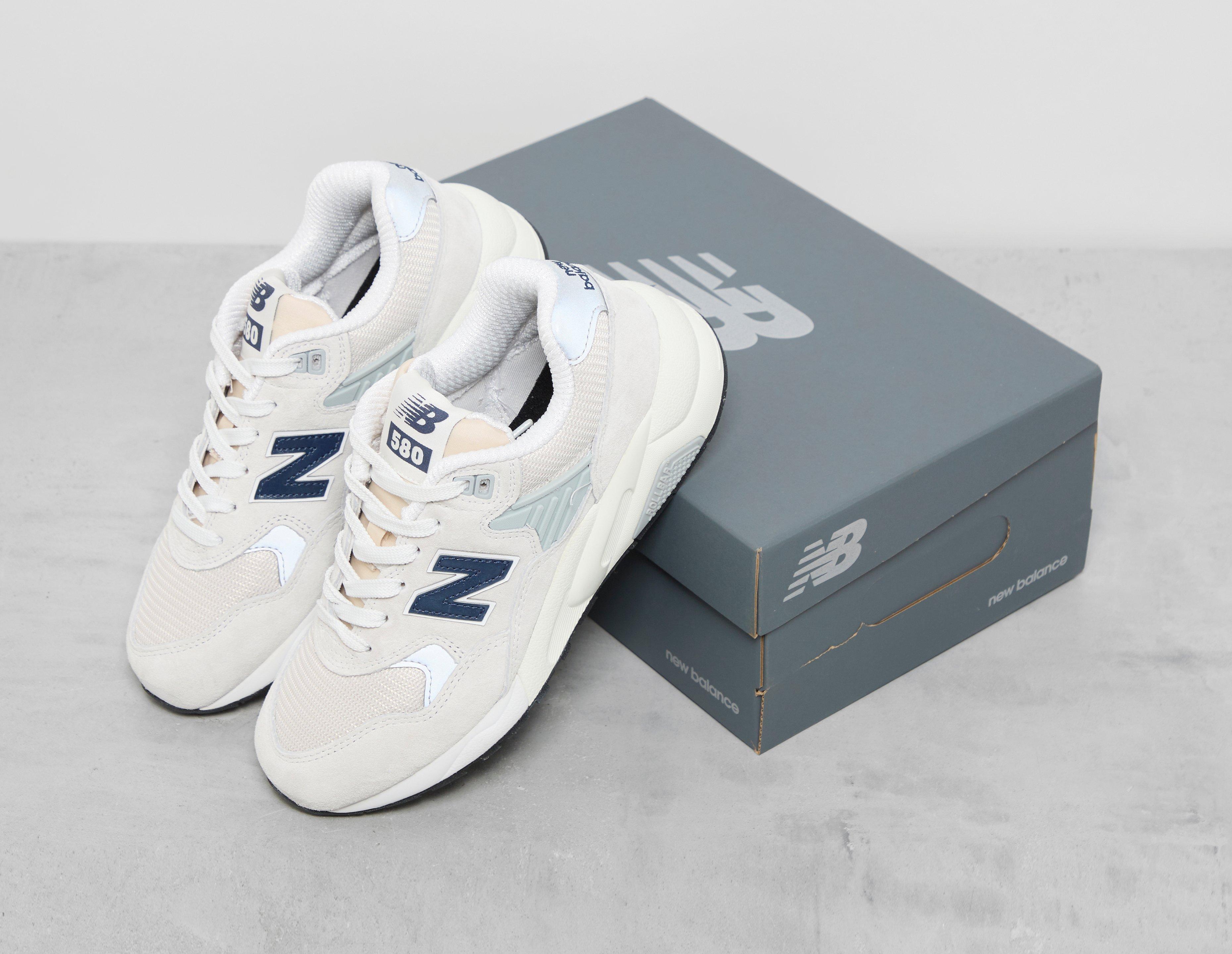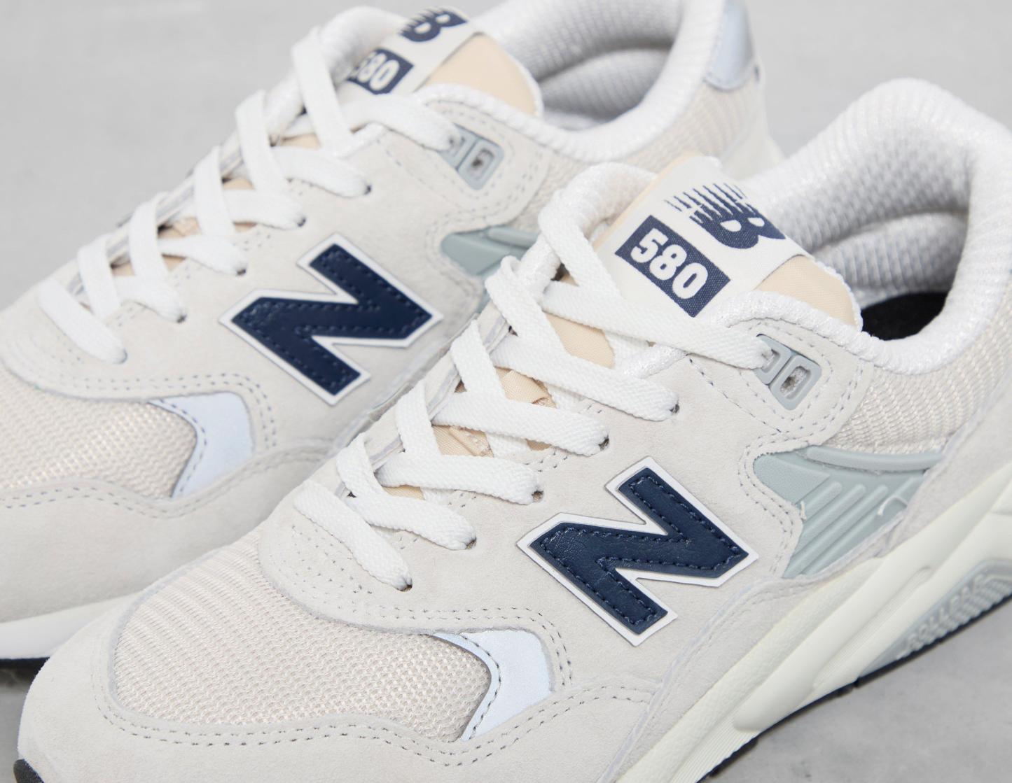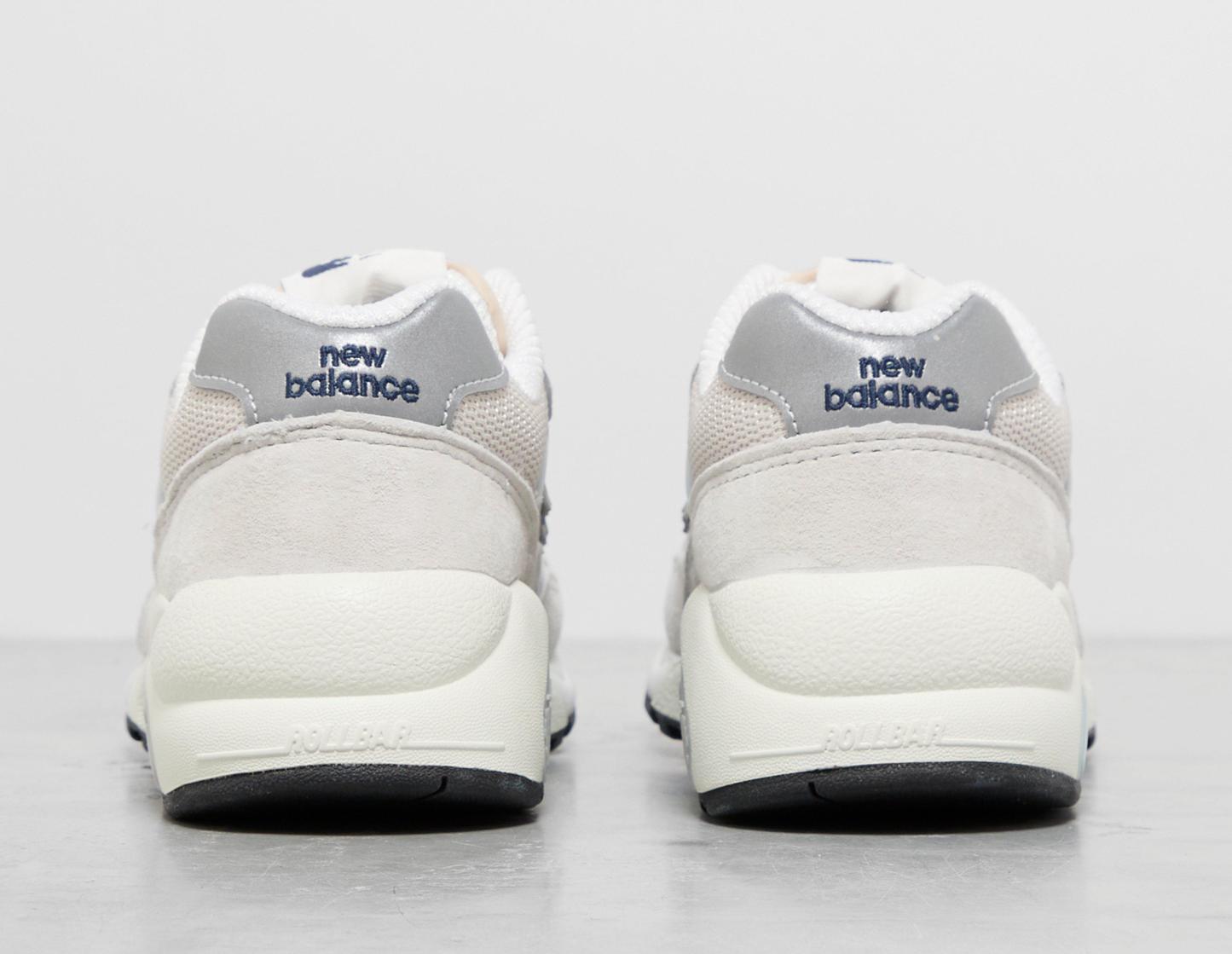 The New Balance 580 model continues to make an impression with its all-new crisp palette. White forms the suede body, with breathable accents of mesh doused in a tonal palette, making up most of the fit's entirety. Navy detailing is spotted on the 'N' labelling and is worked into the heel counter, while further 580 branding adorns the tongue. Heading to the lowers, the EVA midsole works in tandem with Rollbar technology that supplies the perfect balance between responsiveness and cushioning. | MT580GNV