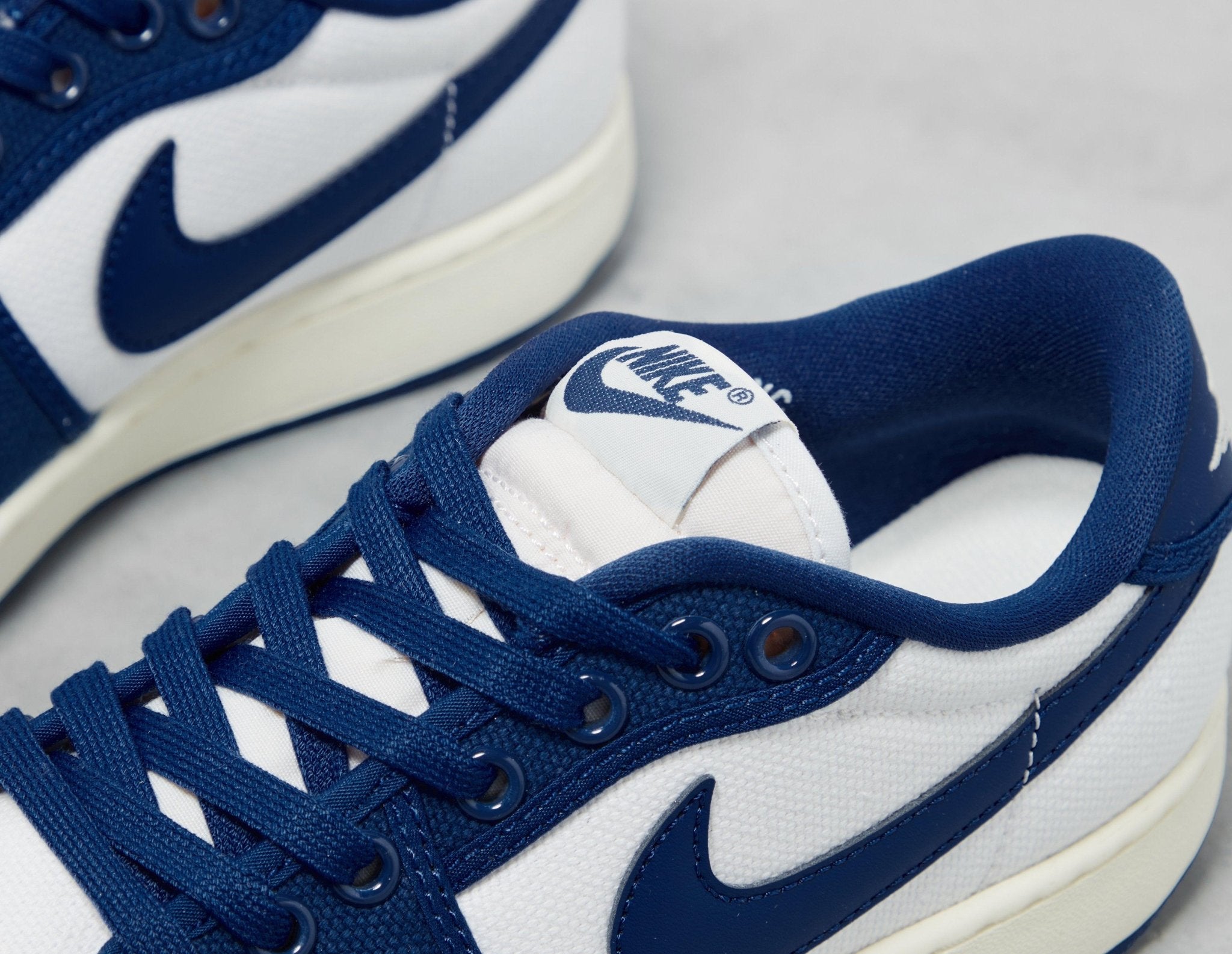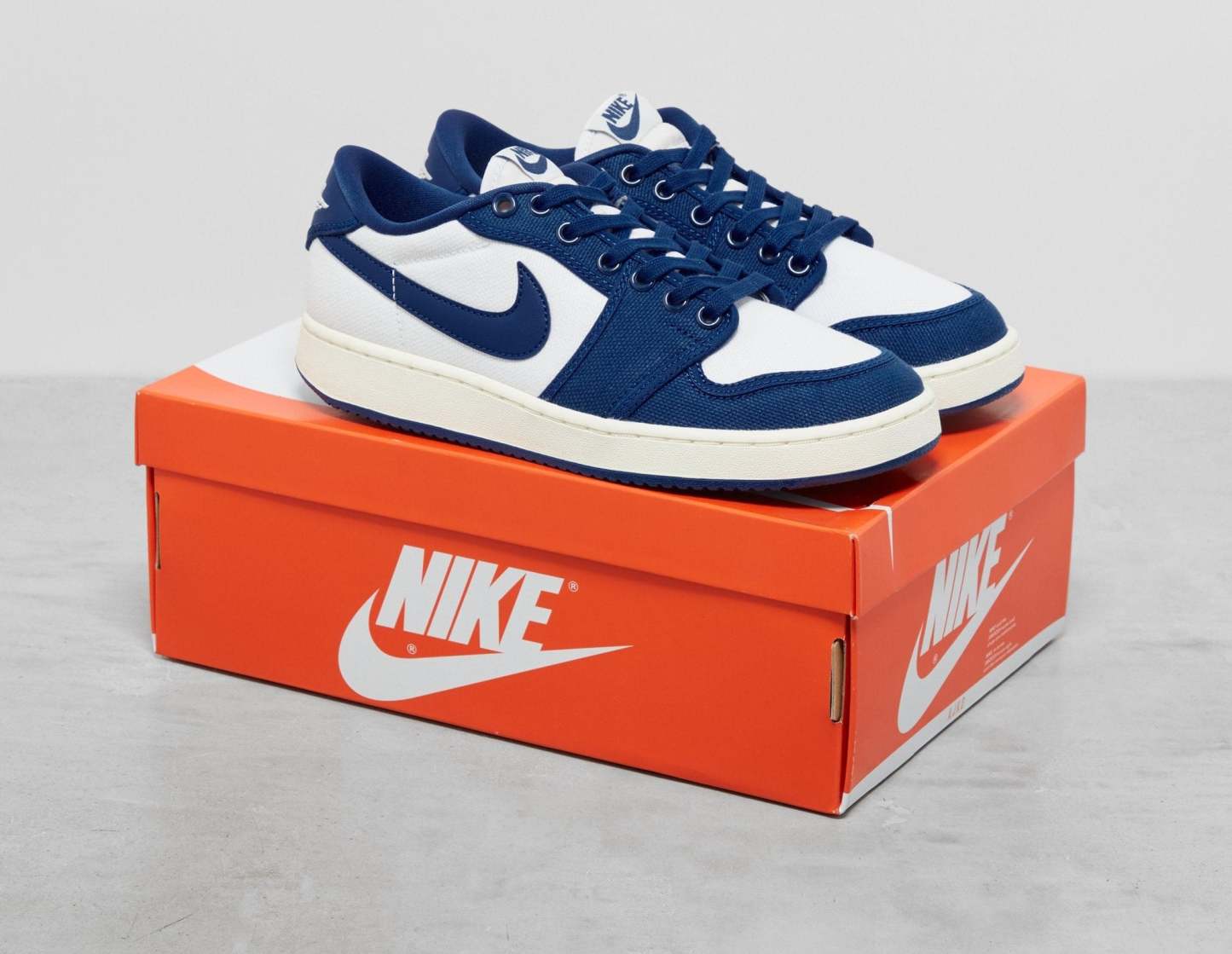 The Air Jordan 1 KO Low is the latest to receive the famed 'Kentucky' colourway. Durable canvas leathers are draped in a crisp white base, followed by titular accents of blue that offer a pop of colour to the mudguards, quarters, eyestays and heel. Swooshing also takes on this brightly rendered colour scheme and so does the adjustable lace system. Air cushioned midsoles keeps you feeling cloud like with each stride, while underfoot, a rubber sole prepares you for those city strolls. | DX4981-103