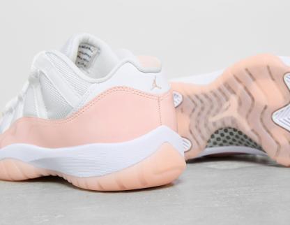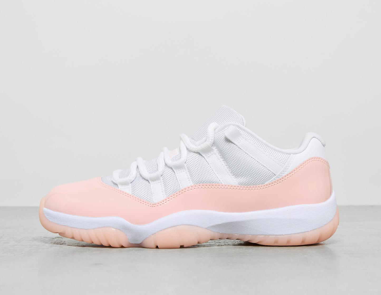 This Air Jordan 11 opts for a clean-looking colourway with 'Legend Pink' detailing for a summer look. Patent and soft leather fills the upper of the shoe, plus there is a snug mesh tongue for a breathable feel up top. Jumpman logos sit on the tongue and heel for a more subtle look, while thick bungee-inspired lacing secures the fit. Air cushioned too, spongy comfort is certified, and to complement the above, there's a pink and white rubber mantled outsole. | AH7860-160