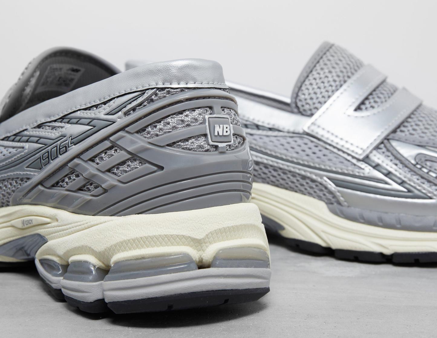 Originally seen at Paris Fashion Week via a Junya Watanabe collaboration, New Balance unveils the new 1906L in silver with 'Shadow Grey' and 'Turtledove'. Borrowing the sole unit from the 860v2, the upper has been moulded to the shape of a loafer with a holed open mesh base, synthetic overlays in futuristic metallic shades and even its own loafer saddle. | U1906LAE