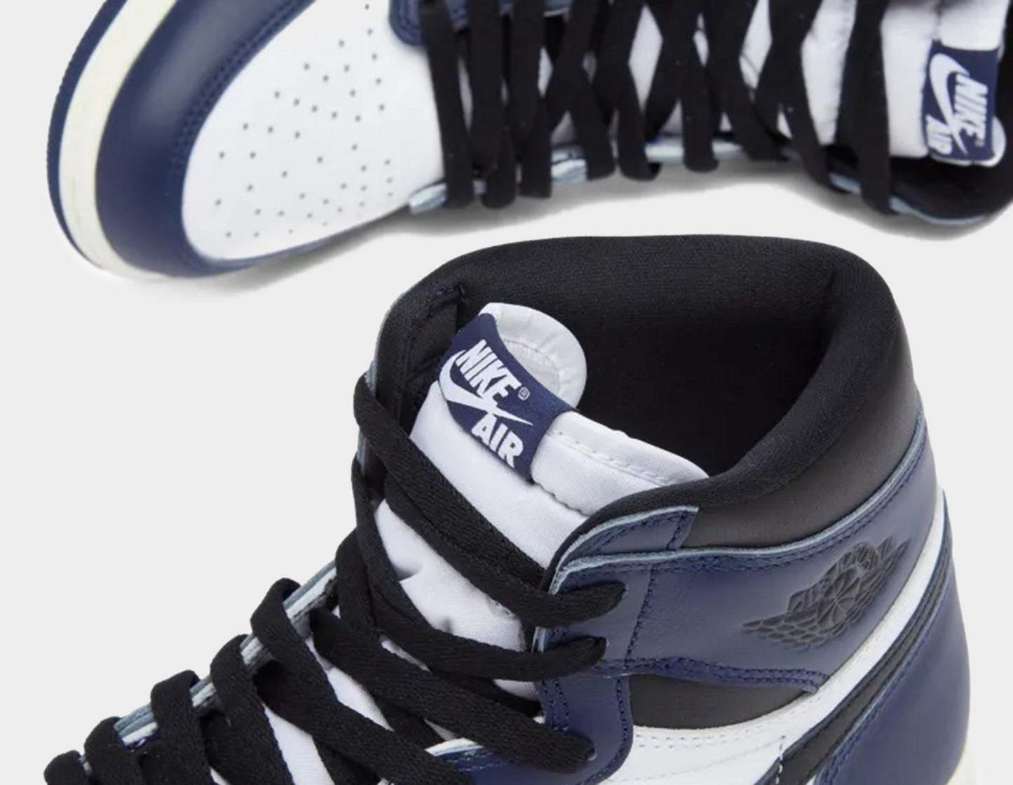 The beloved Air Jordan 1 returns with a Retro High OG 'Midnight Navy' guise. Premium leather envelopes the upper, coated in contrasting tones of white and navy, with a black hue coating the Swooshes and Wing adorning the collar of this lifestyle shoe. The Air-cushioned midsole is painted in white brightening up the sneaker and delivering comfort during impact. | FD1413-401
