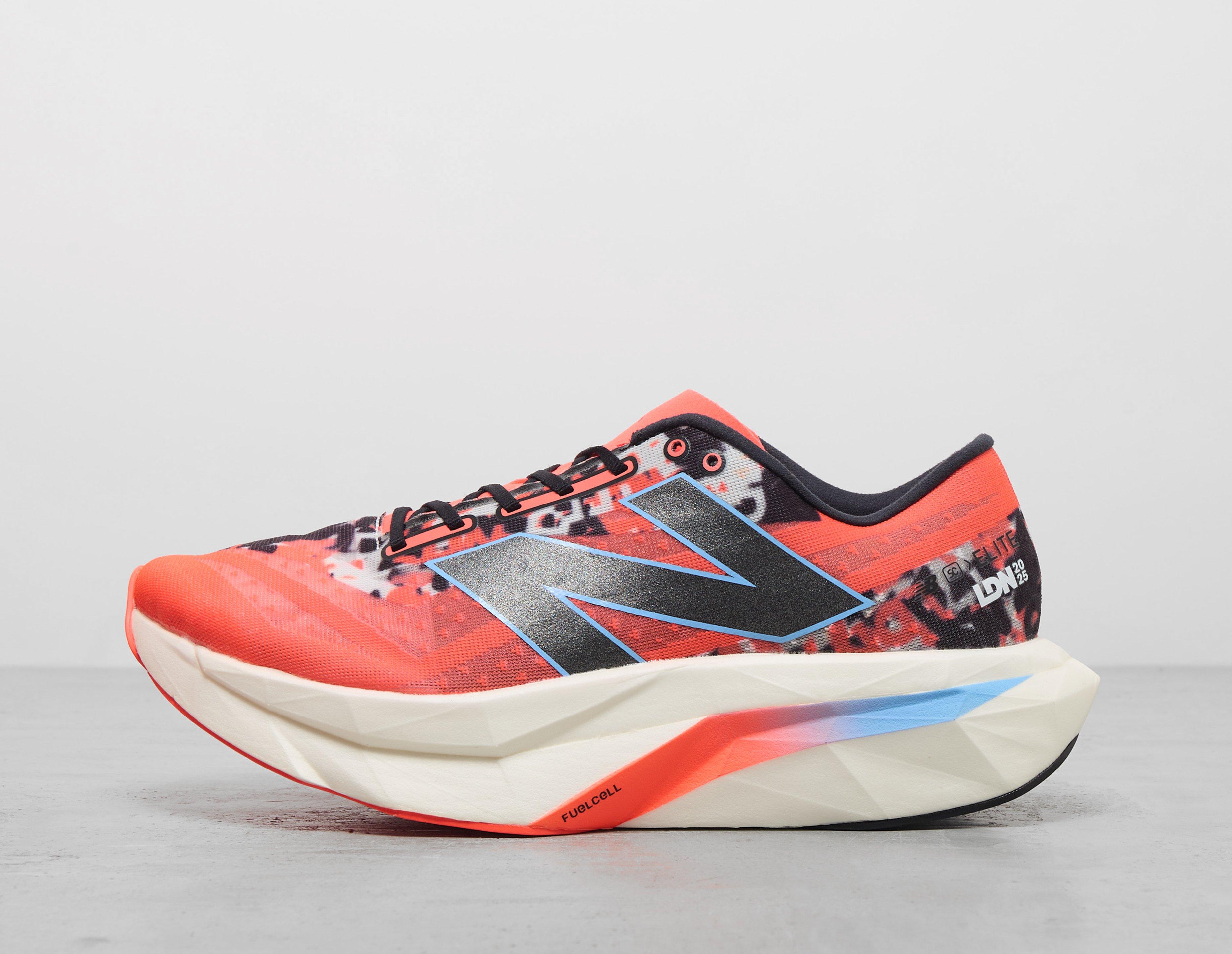Designed for the TCS London Marathon with official race branding, the New Balance FuelCell SuperComp Elite v4 is a propulsive race day shoe that will help make up the seconds. Constructed from breathable textile, the 'Urgent Red' upper utilises FantomFit, ensuring ultra-light bonded support. An Energy Arc sport-specific carbon fibre plate with strategically placed midsole voids enhances stored energy for a higher energy return, while the rocker profile maintains natural and smooth heel-to-toe transitions. | MRCELLM4