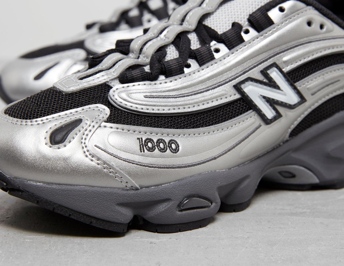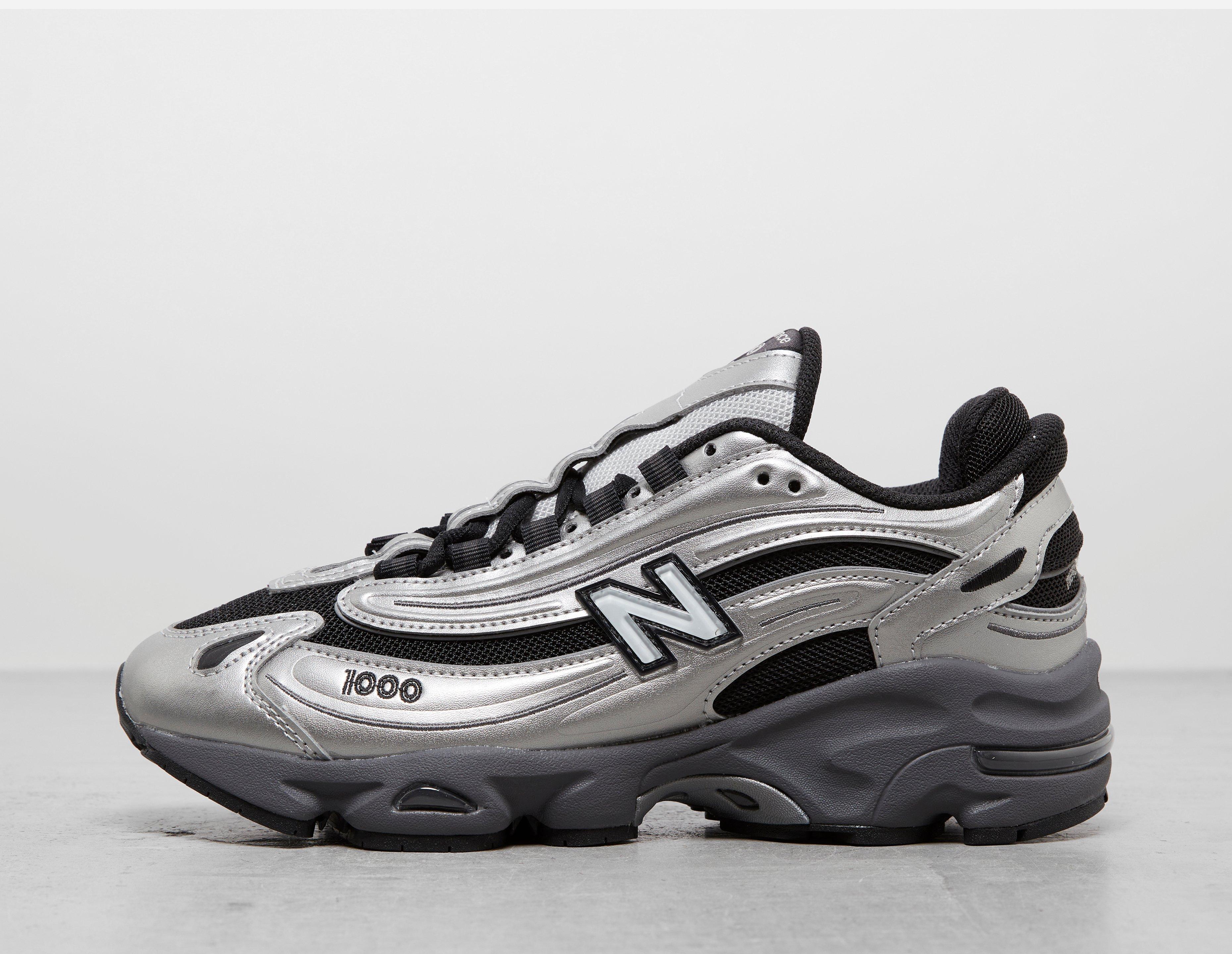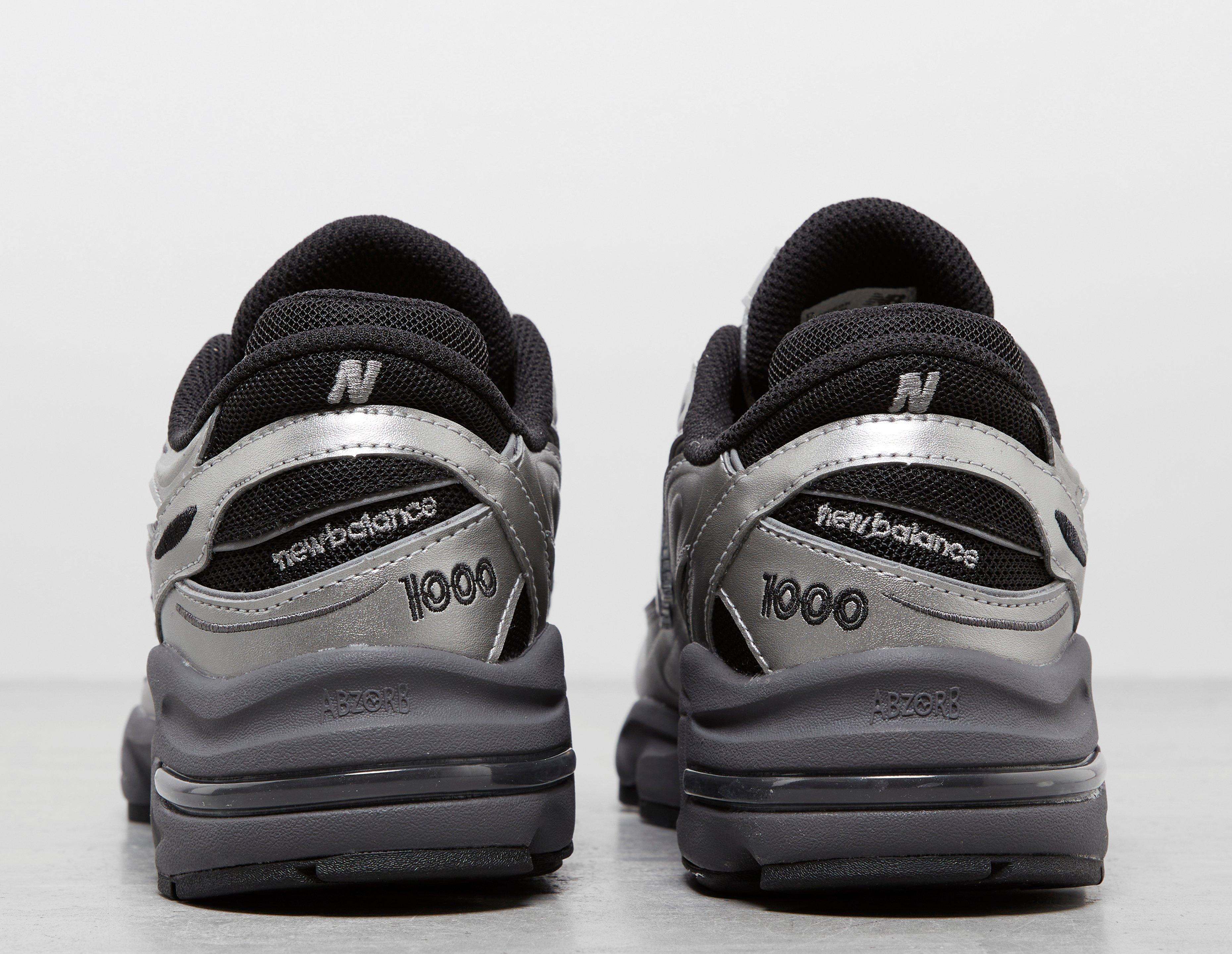 First hitting the shelves in 1999, New Balance's 1000 has made an impactful return from the archives. The upper is a blend of breathable black mesh and metallic leather overlays decked in 'Silver Metallic'. Running below is a combination of polyurethane and ABZORB cushioning in the midsole with a forefoot Stability Web for extra support. | M1000EGR