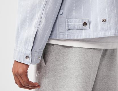 Air Jordan joins creative forces with A Ma Maniere in this latest capsule, to celebrate 10 years of the duo elevating apparel. Heavyweight twill delivers a structured fit with pin stripe detailing elevating a classic jacket. Co-branding features via woven labels while a button closure offers a personalised fit. | HF4353-440 | our model is 6'2" and wears a size medium