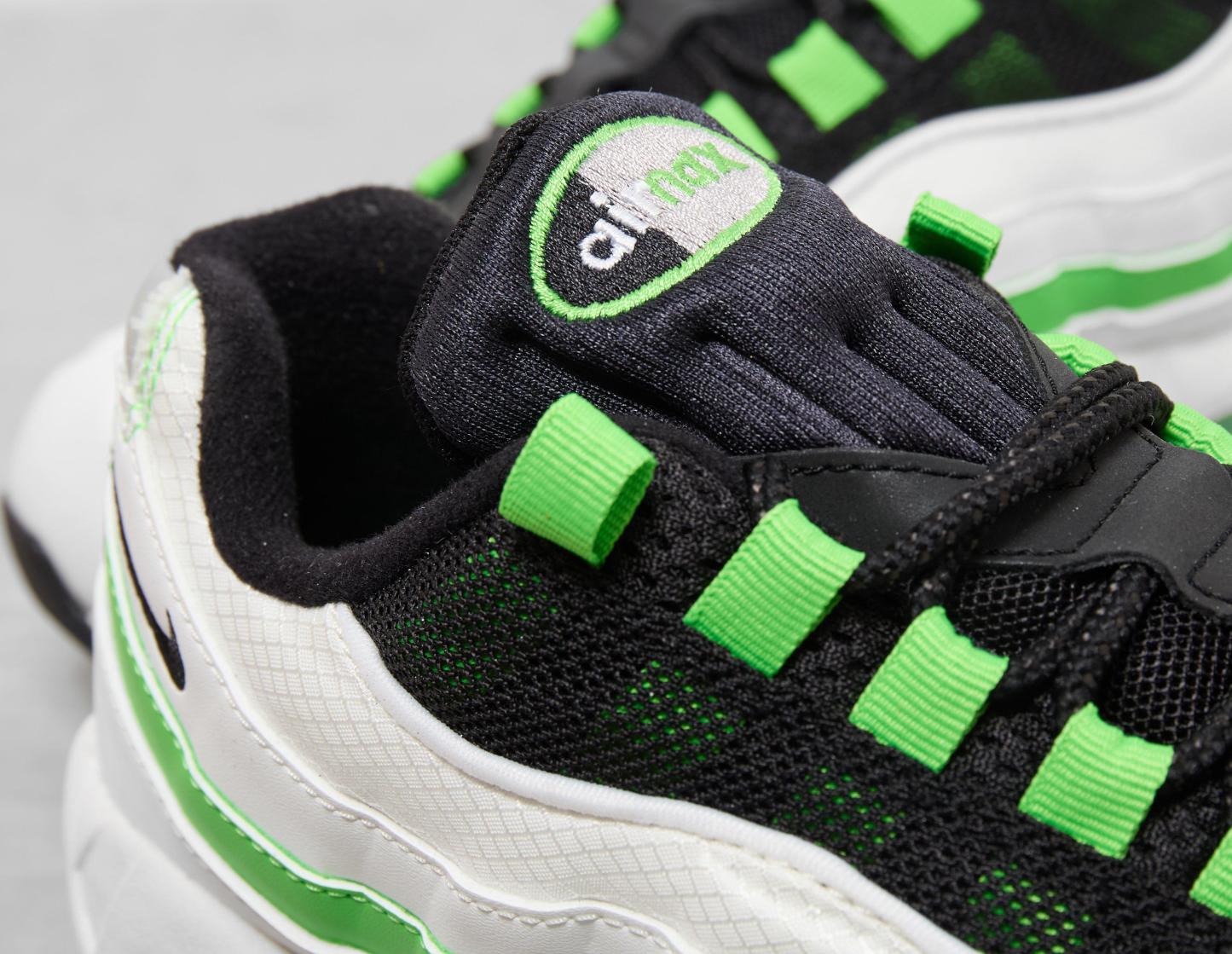 The covetable Air Max 95 returns, and this time the 'Big Bubble' iteration is constructed with layered leather uppers in white and 'Green Gusto'. Detailed with subtle branding to the tongue and heel, the silhouette rests above the iconic Air Unit midsole for supreme cushioning in every step. Completing the iconic design is a rubber outsole for tailored traction and support. | IB1667-100