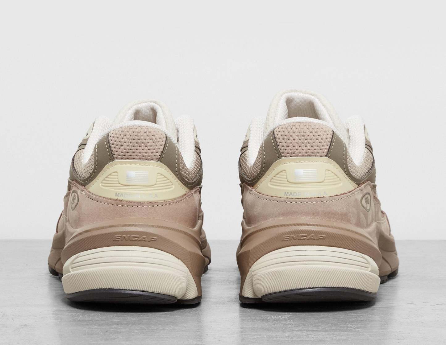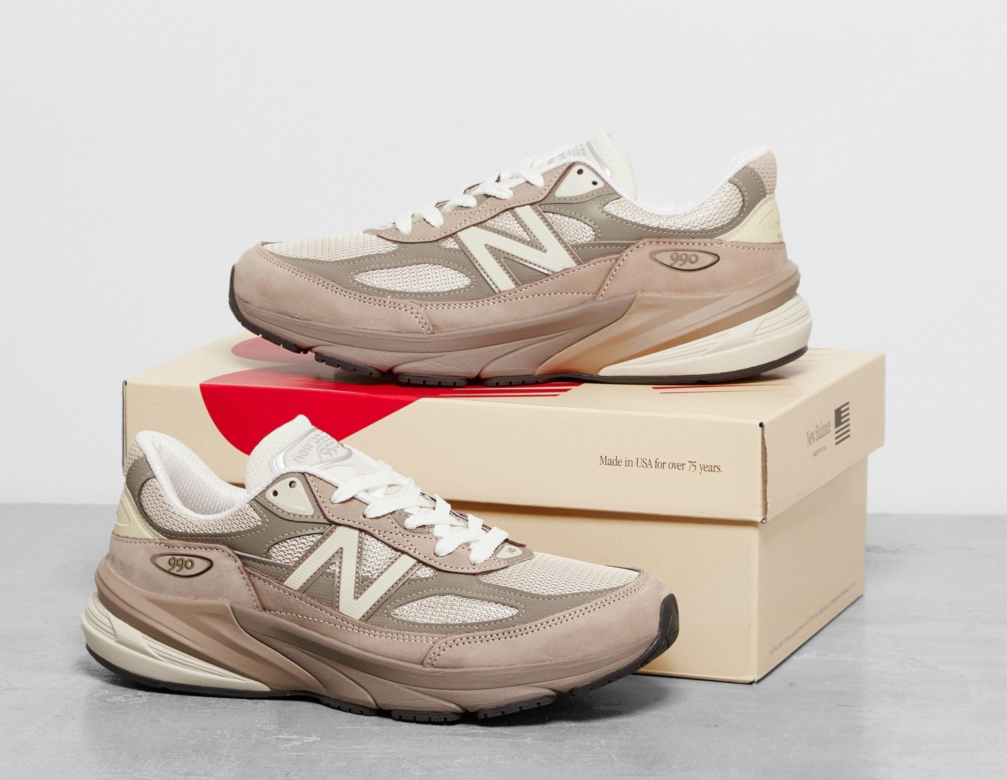 One of the Boston label's most revered styles to date, New Balance continues to make waves with the 990 'Made in USA' model. Centering its focus around the 990v6, the silhouette now takes on 'Driftwood' and 'Timberwolf' tones. A premium offering of pigskin suede provides a host for airy mesh underlays spotted on the midfoot, sides and tongue. 'N' labelling graces the laterals, 990 inscribed logos sit on the heel, while FuelCell tech joins the ENCAP infused midsole. Signing off the fit is a treaded rubber sole, offering durability that lasts. | U990SG6