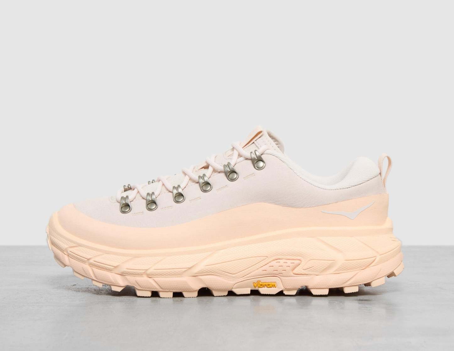 HOKA's Tor Summit draws on the brand's hiking heritage to offer a contemporary silhouette built for urban adventure. A nubuck leather upper is reinforced with a rubber mudguard in a soft 'Rose Cream' and 'Tangerine Glow' colourway, while metal eyelet hardware offers a premium finish. Underfoot, a symmetrical bed of cushioning provides signature support and a Vibram Megagrip outsole keeps you steady on all surfaces. | 1147952-RNG