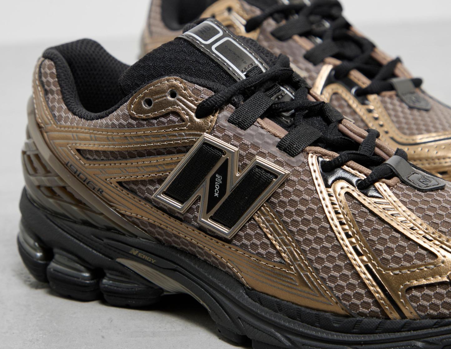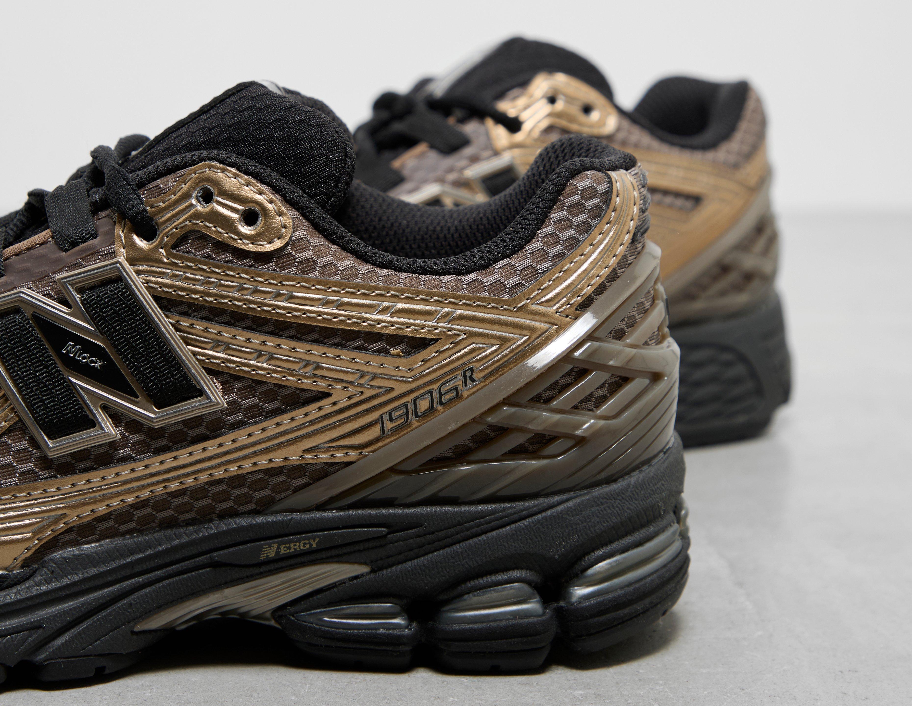 Returning in a black and 'Bronze' colourway, the New Balance 1906R chooses a mesh base for this release. Uppers are comprised of leather overlays with N-lock lacing for a secure, locked-down fit. Heel counters opt for leather instead of the usual TPU shell, while below, hardwearing rubber soles are injected with N-ergy and ABZORB technology for comfiness with every step. | U1906RCJ