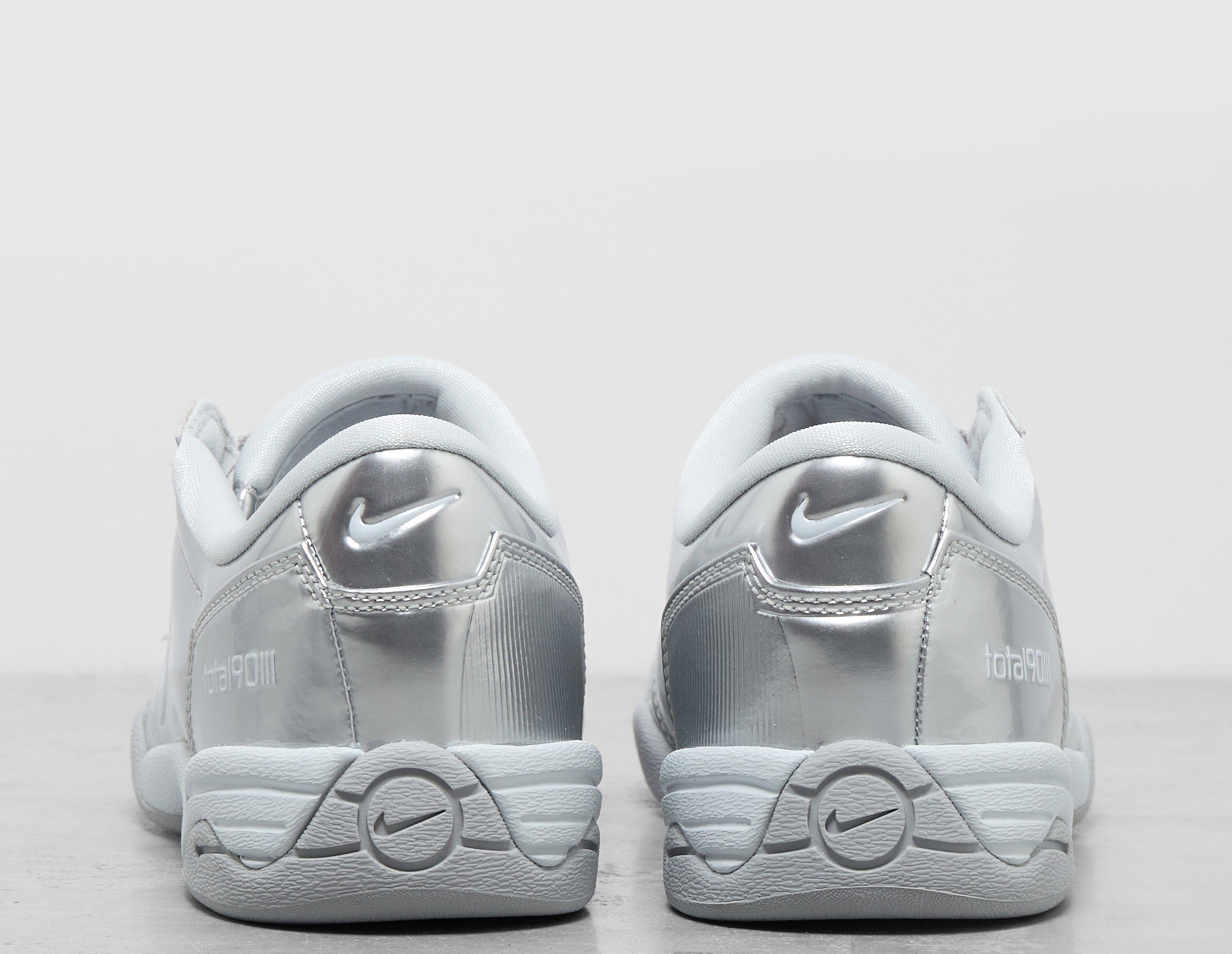 Worn by the likes of Rooney and Ronaldinho in the 2000s, the Nike Total 90 was an era-defining football boot. Now for 2025, the T90 is back and has been transformed into a lifestyle look with a retro-inspired 'Metallic Platinum' quilted upper that maintains its asymmetrical lacing and T90 branding. The sole unit has been swapped out for grippy flat rubber that's ideal for the every day. | II9792-011