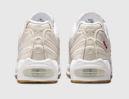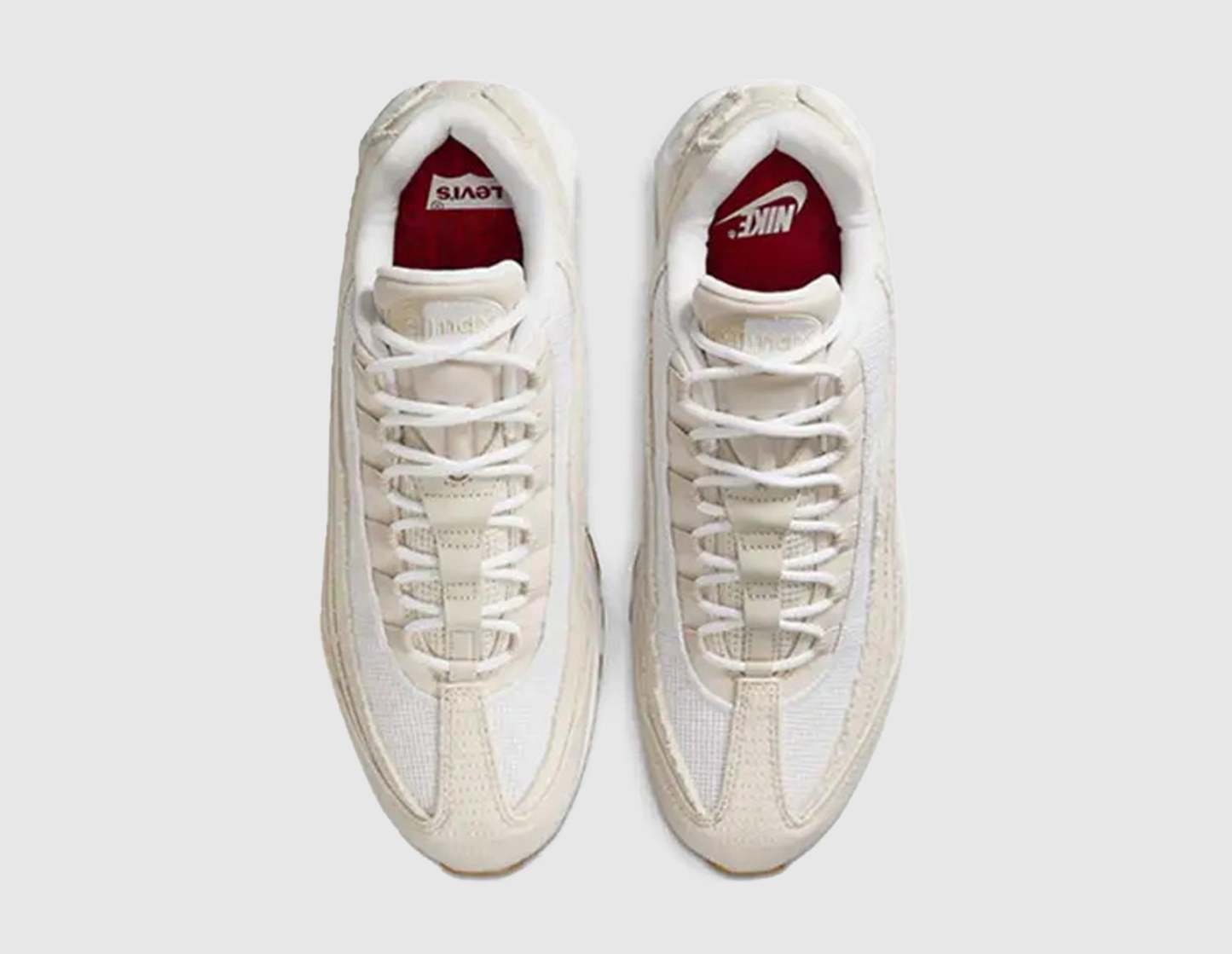 Reuniting once more, the Nike Air Max 95 x Levi's reimagines the legendary silhouette through a denim-drenched lens. Paying homage to Levi's rugged heritage and Air Max's visible comfort, this collaborative sneaker showcases layered textures with frayed edges on the 14oz 'Ecru' denim uppers, which will wear over time, mimicking a pair of Levi's jeans. Further down, a matte midsole houses the original 'Big Bubble' Air Max unit while the Waffle outsole features exclusive Levi's touches - hits of red on the shank plates that match up to the Levi's Red Tab on the quarter panels and co-branded sockliners. | HM4743-100