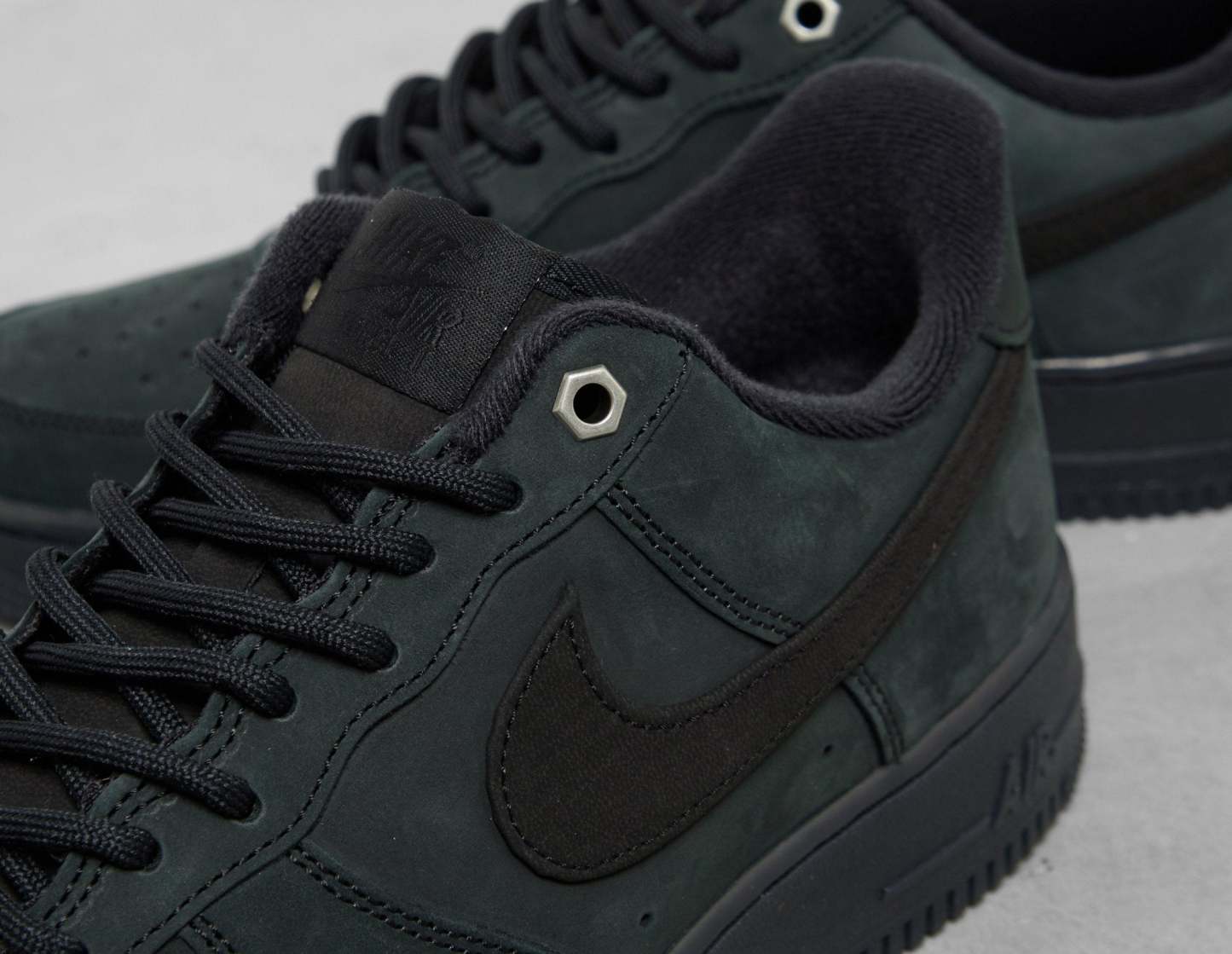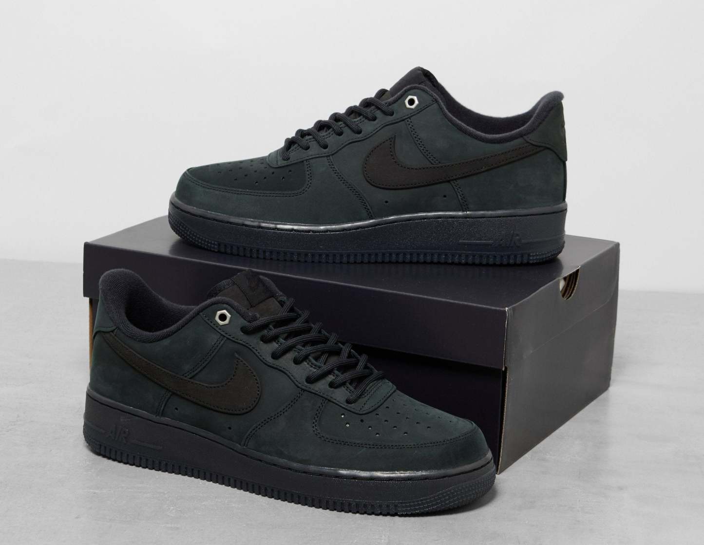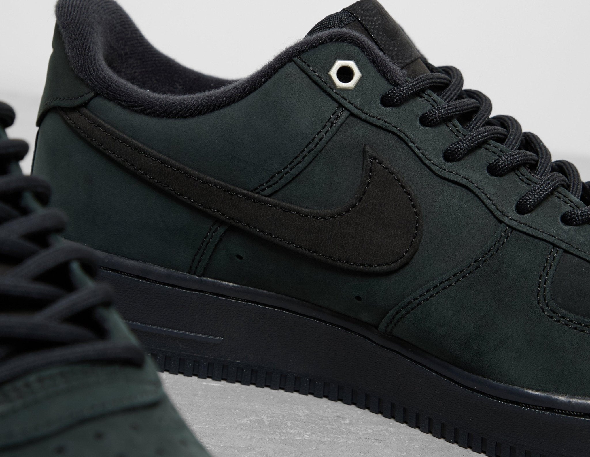 Work boot-inspired, the Nike Air Force 1 '07 arrives in a luxe 'Triple Black' suede outfit that applies detailing like hex nut eyelets and rounded laces to achieve a utilitarian-led aesthetic. Underfoot, a full-length Air unit offers reliable impact-absorbing comfort with every step. | CJ9179-001