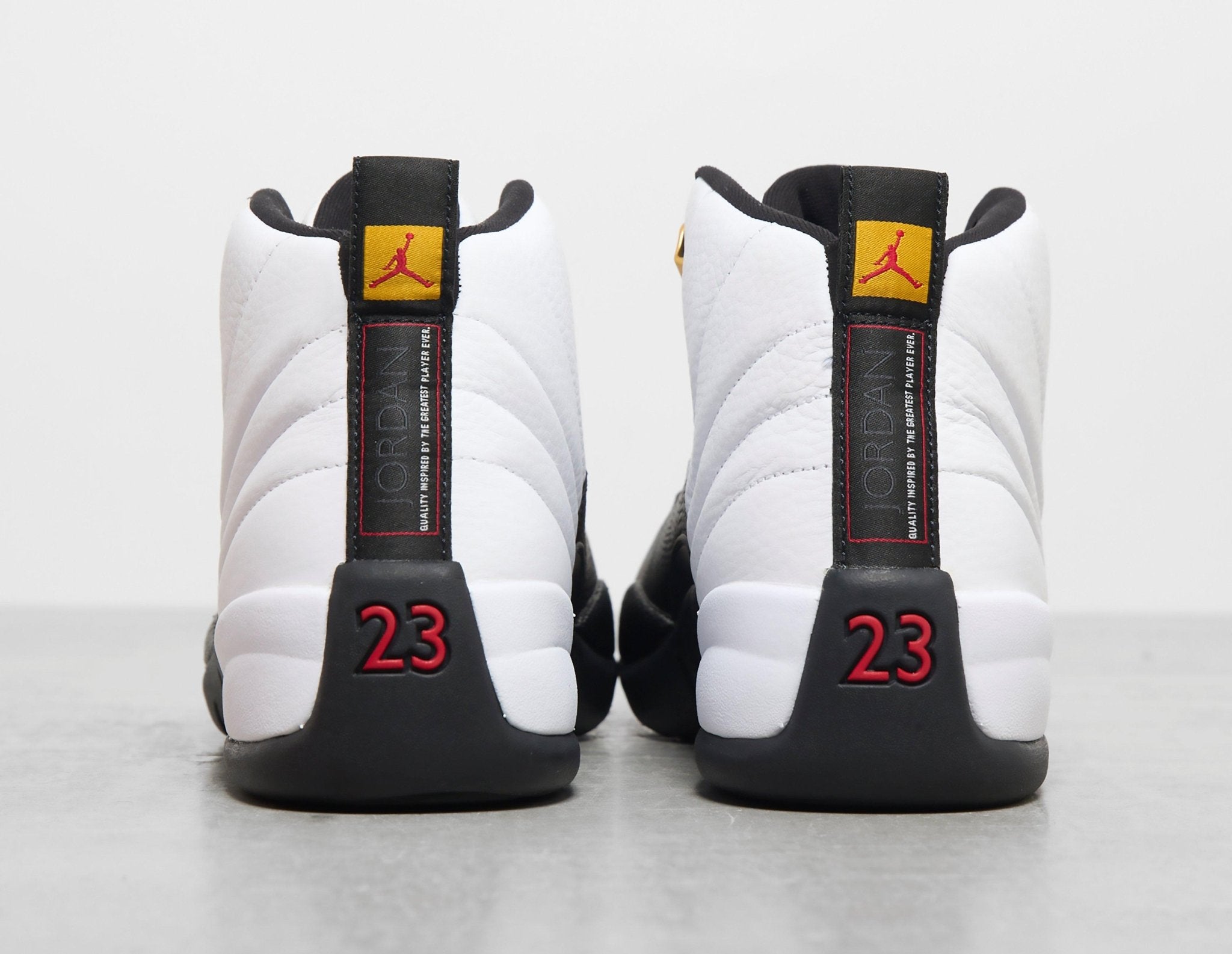 After a 12-year hiatus, the Air Jordan 12 Taxi is making its return to the shelves. Originally released in 1996, this colourway featured heavily during the 96/97 NBA season, where MJ led the Chicago Bulls to their fifth championship victory. Staying true to the original design, white tumbled leather coats the Japanese rising sun flag-inspired upper, while black reptilian leather wraps the mudguard. Reminiscent of NYC taxi cabs, hits of yellow on the outsoles embedded carbon fibre plate earn the silhouette its title, and to finish, an embroidered Jumpman logo marks the tongue, while 23 stamps the heel. | CT8013-117