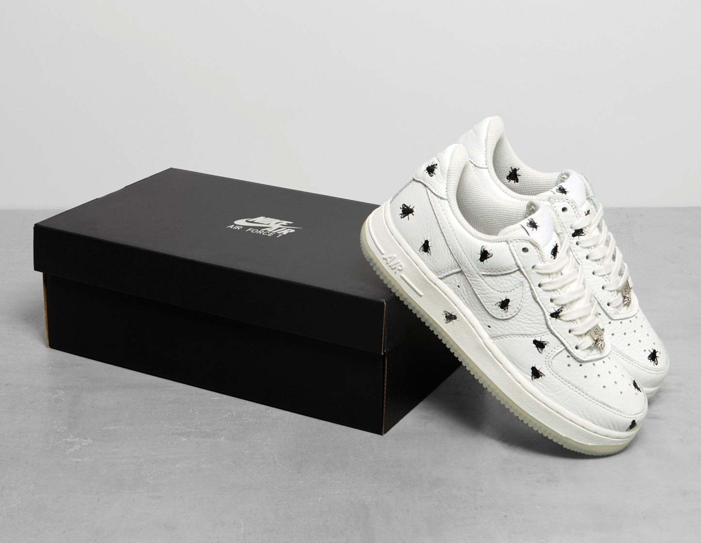 Known for going all-out at Halloween, Nike releases its highly anticipated 2025 entry. Not one for turning away from the weird and wonderful, the Swoosh unveils a shudder-worthy take on its signature Triple White Air Force 1 Low. An elevated tumbled leather covers the entirety of the upper, but its the swarm of houseflies that has landed across the design that makes things unusual. The winged insects are depicted through embroidery and print everywhere from the sidewalls and sockliner to lurking under the translucent outsole. Debossed Nike Air branding adds a premium touch to the heel tab, while one last metallic housefly completes the unsettling look on the lace dubrae. | IM3081-100