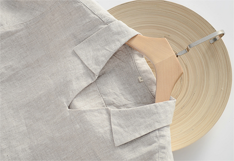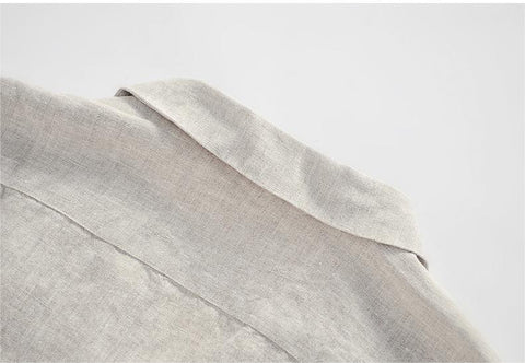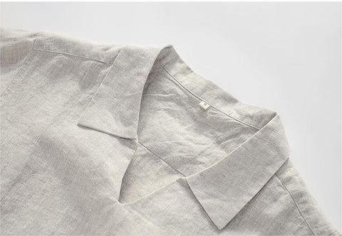 Men's 100% Linen Lapel V-neck Polo Shirt D047