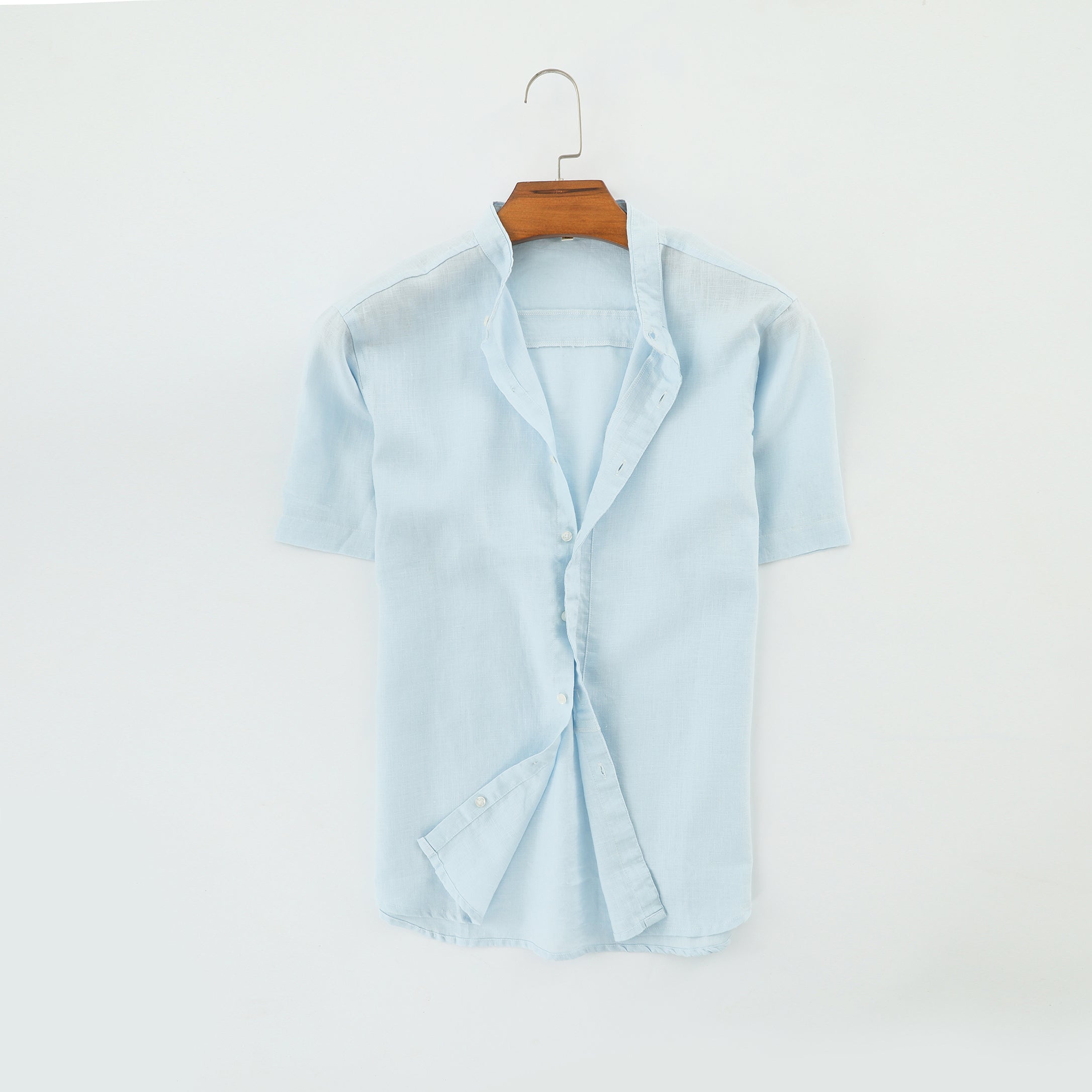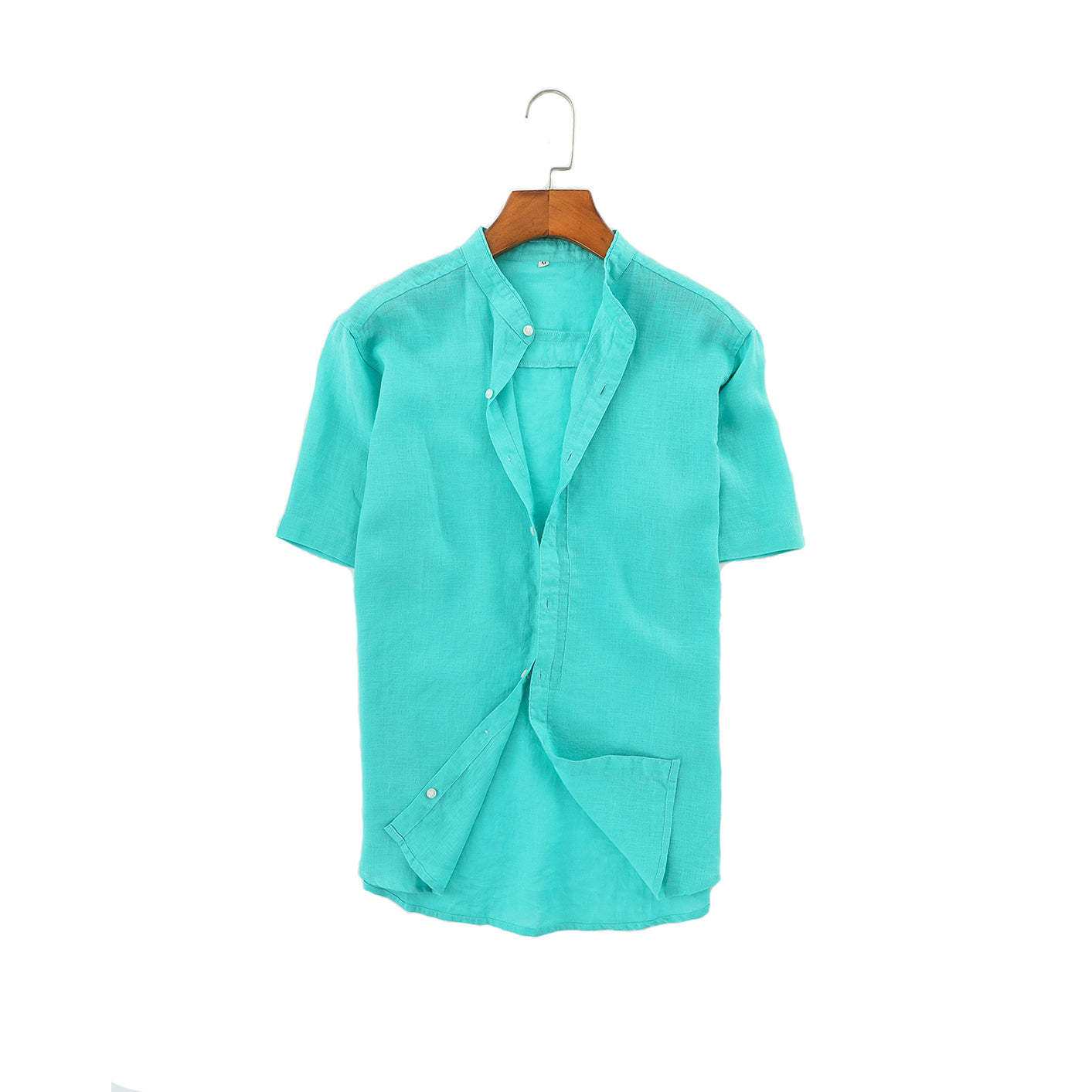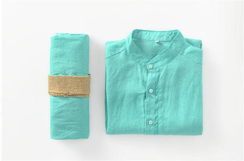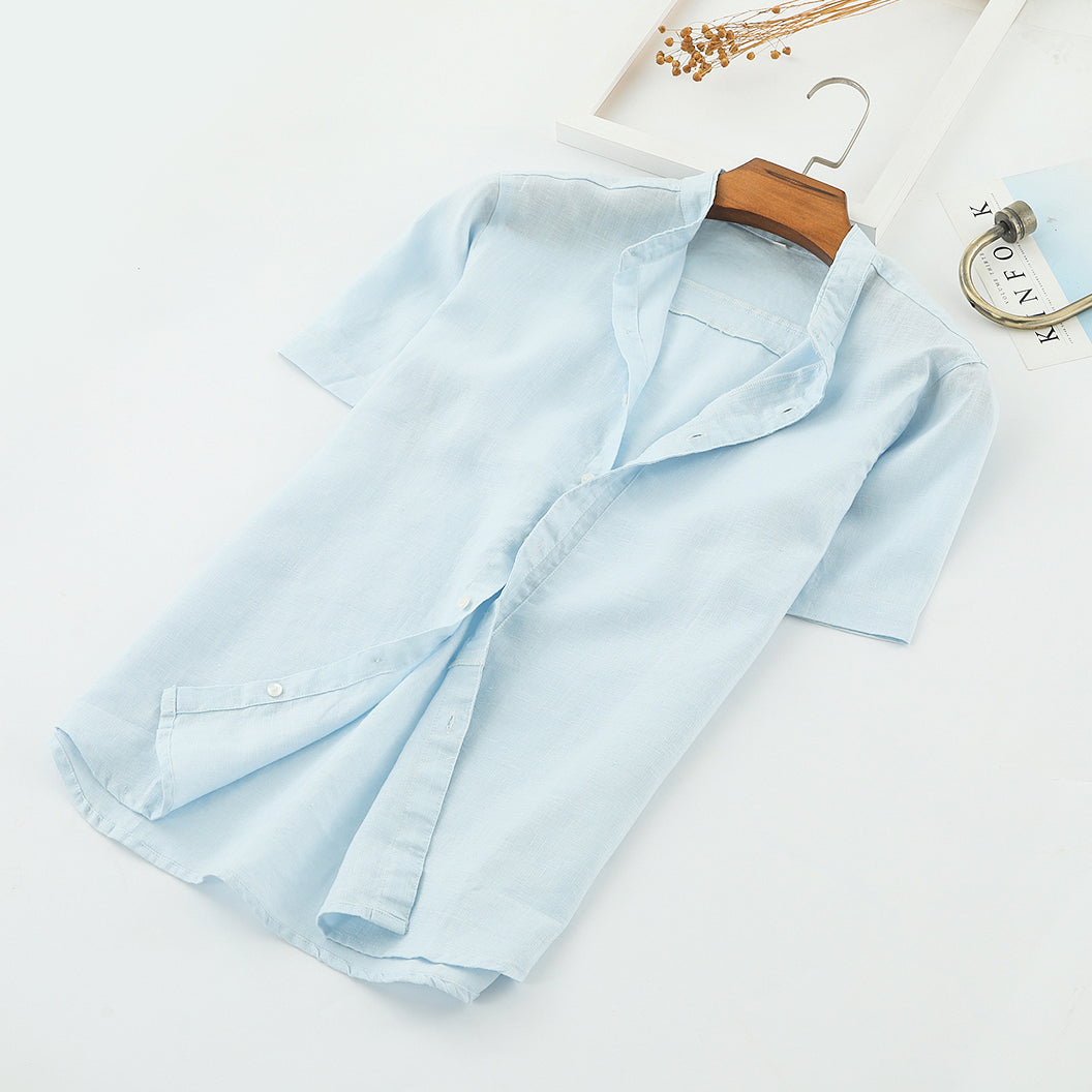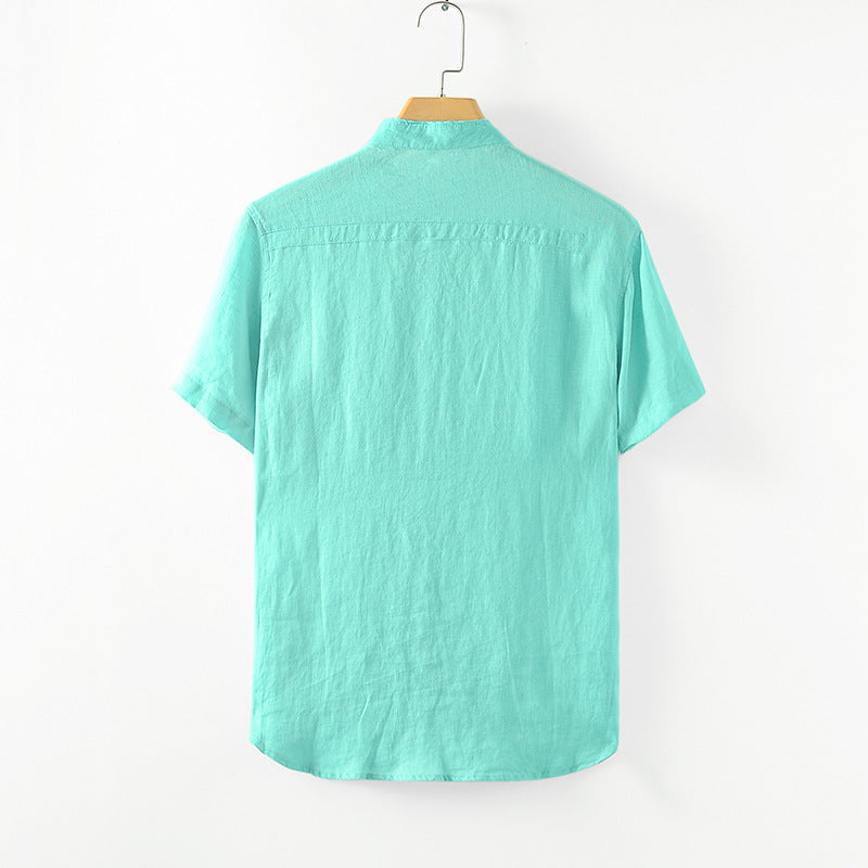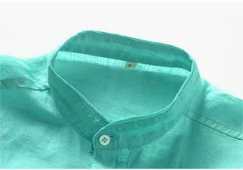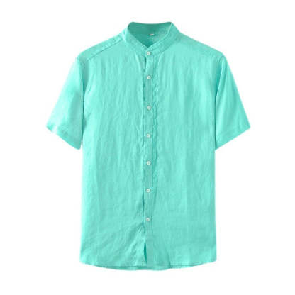 Men's 100% Linen Bands Collar Button Shirt B007