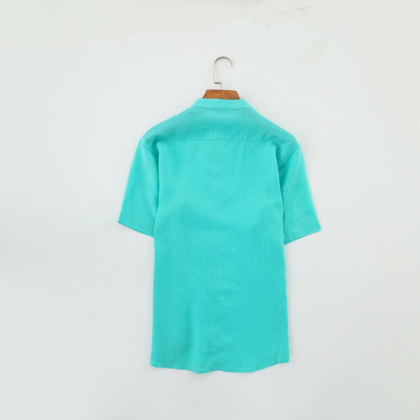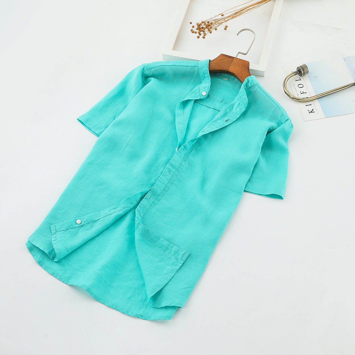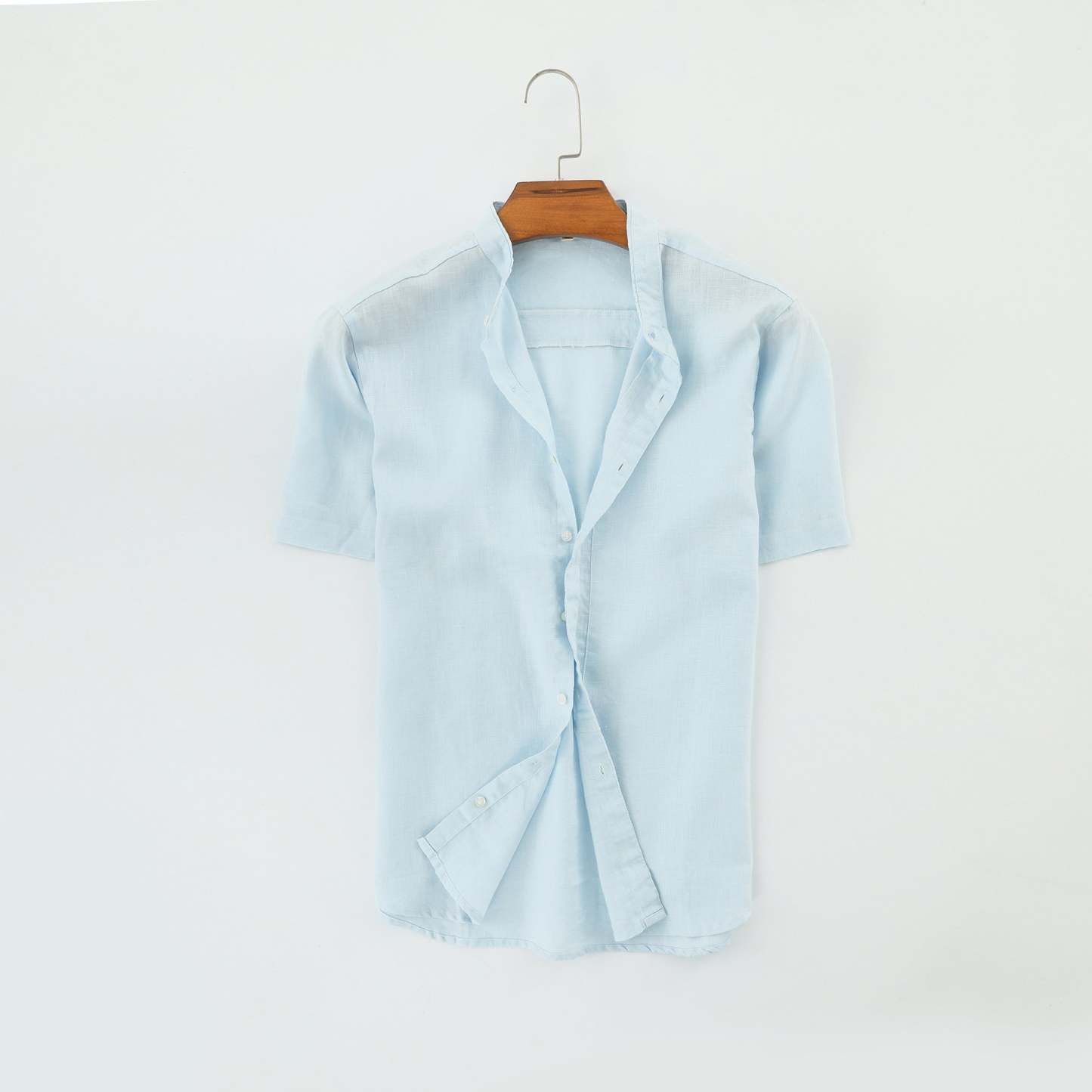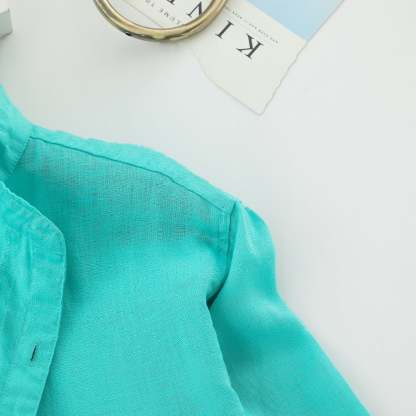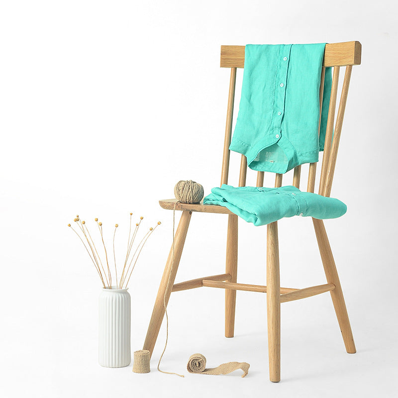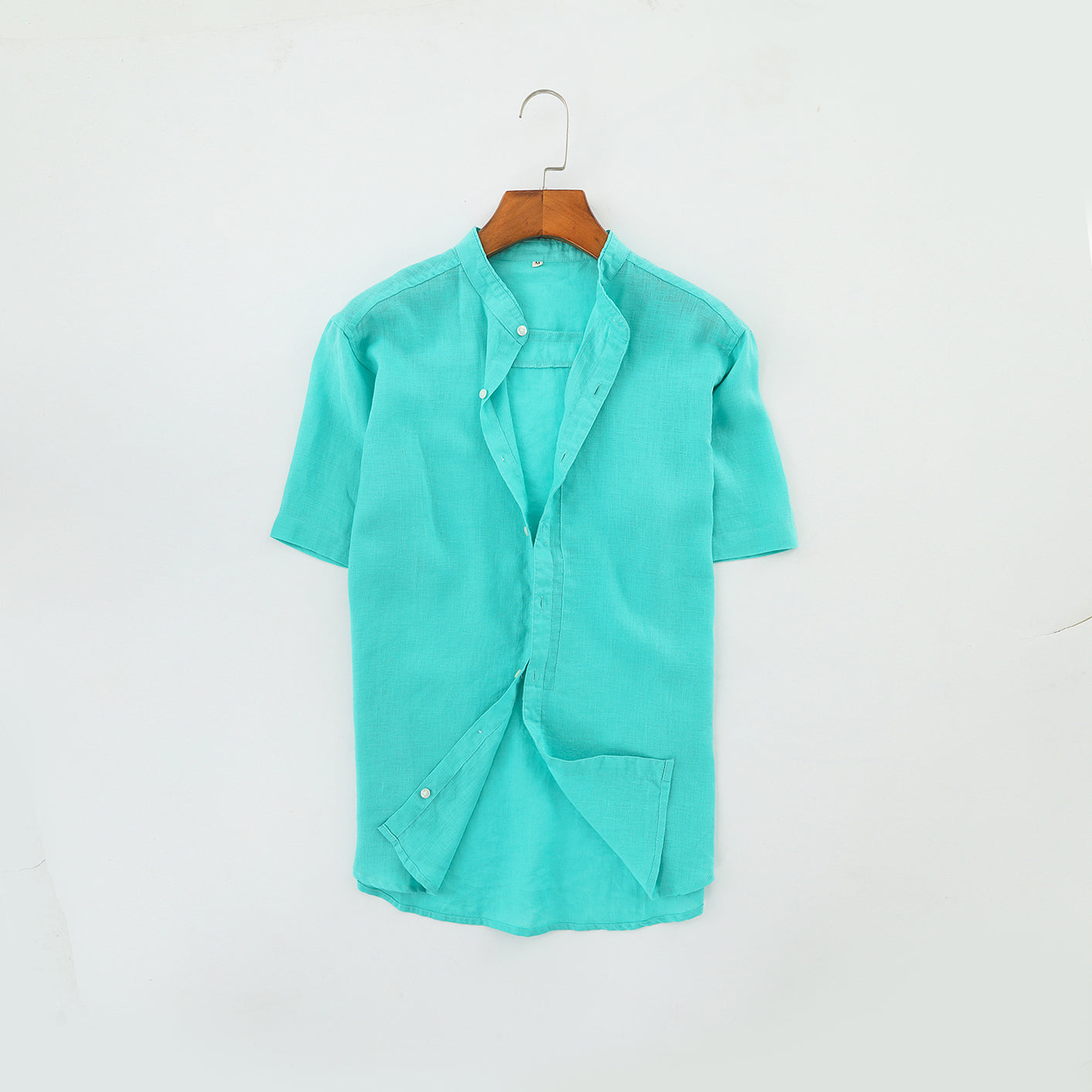 Men's 100% Linen Bands Collar Button Shirt B007