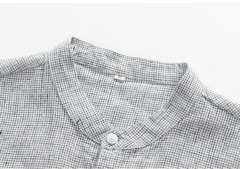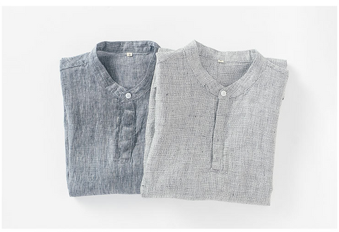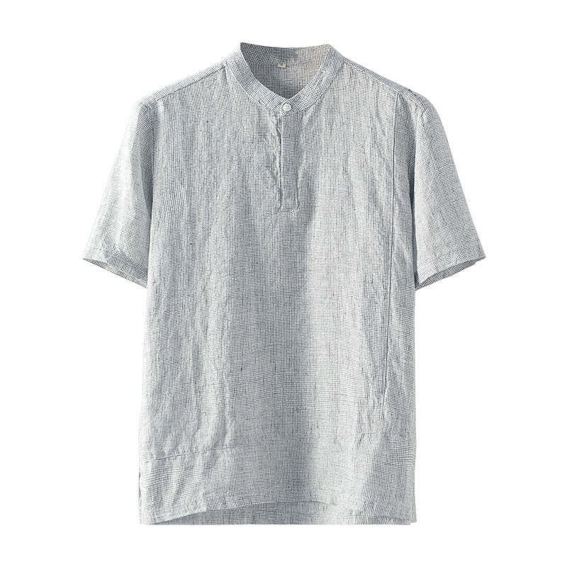 Men's 100% Linen Casual Stand Collar Henley Shirt B012