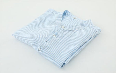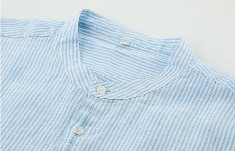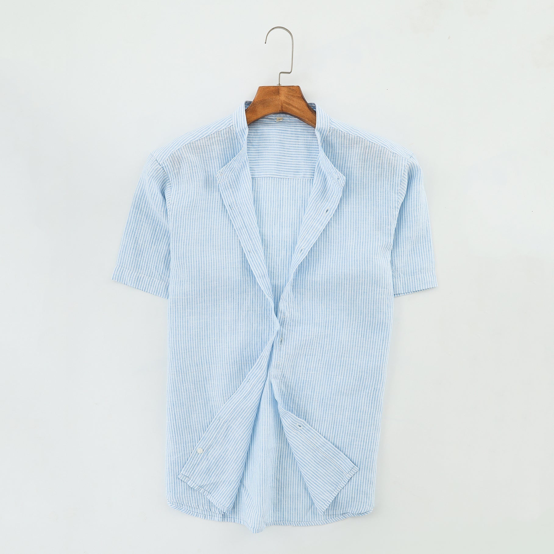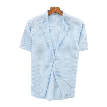 Men's 100% Linen Plain Style Casual Vertical Striped Shirts B033