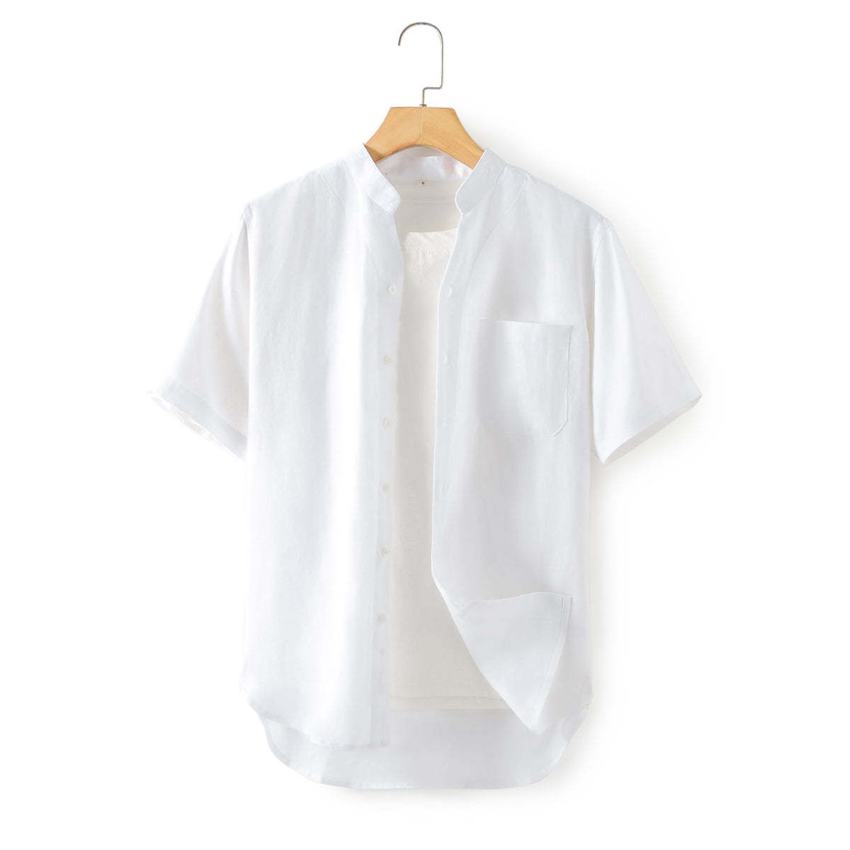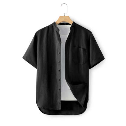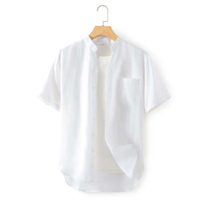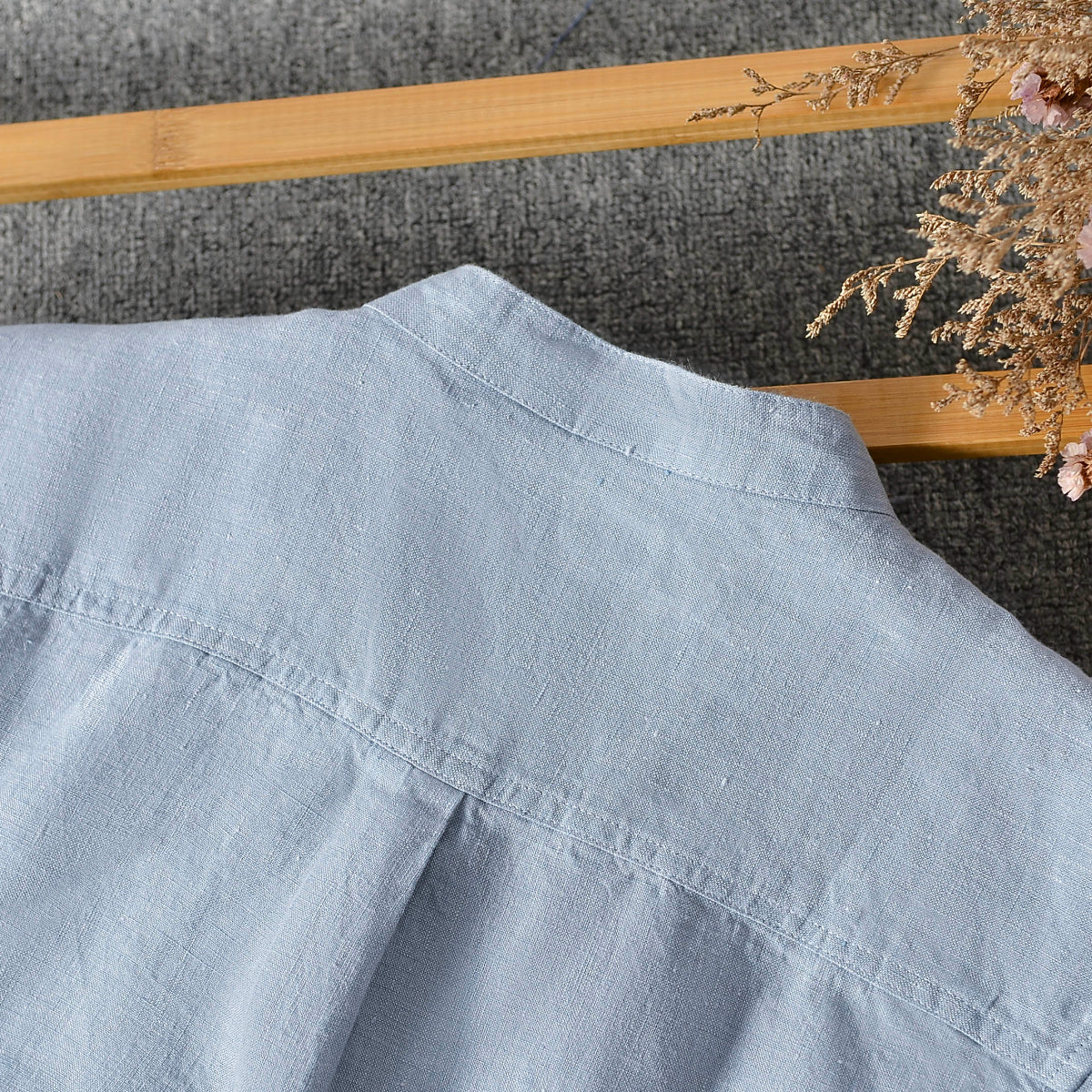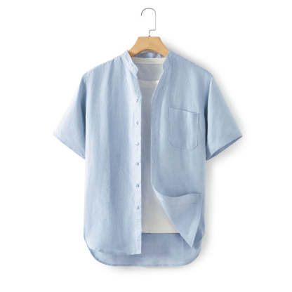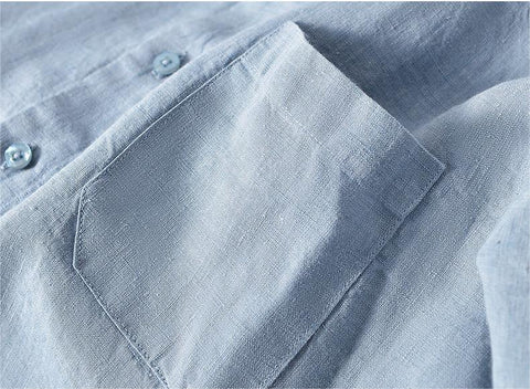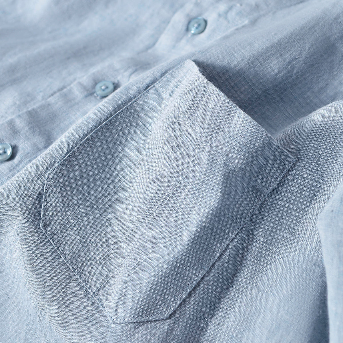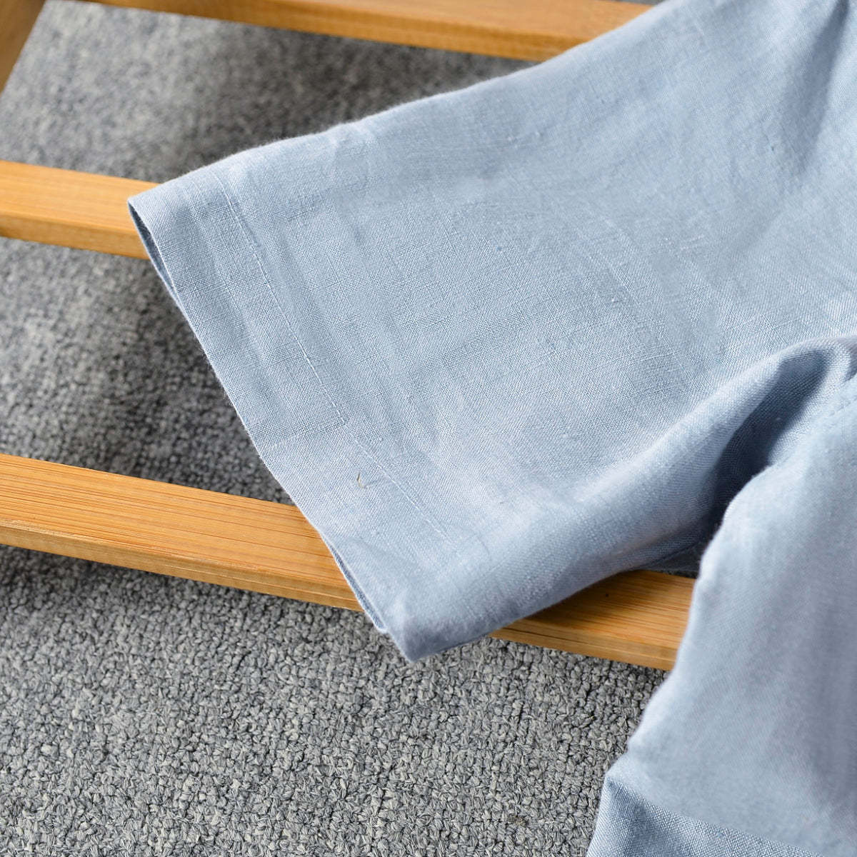 Men's 100% Linen short Sleeve casual t-shirt with one pocket E011