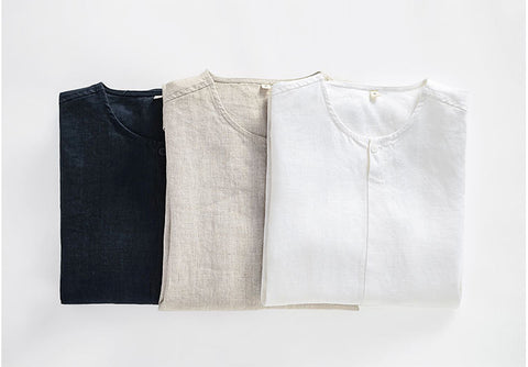 Men's Short Sleeve 100% Linen Shirts D013