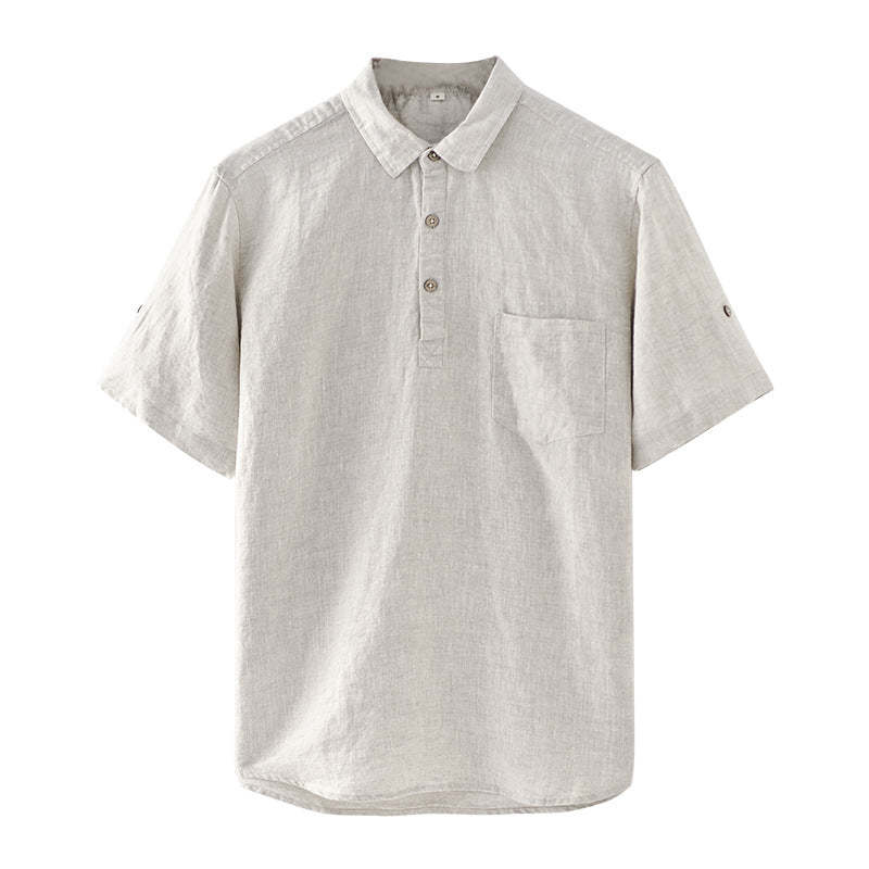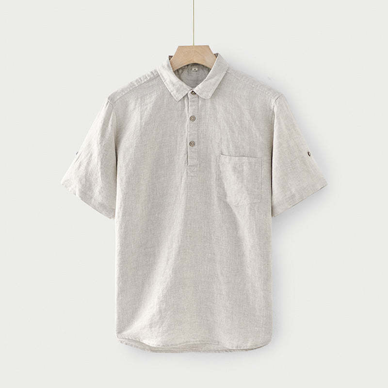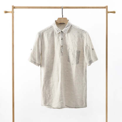 Men's Casual And Comfortable Linen Short-Sleeved Polo Shirt C028