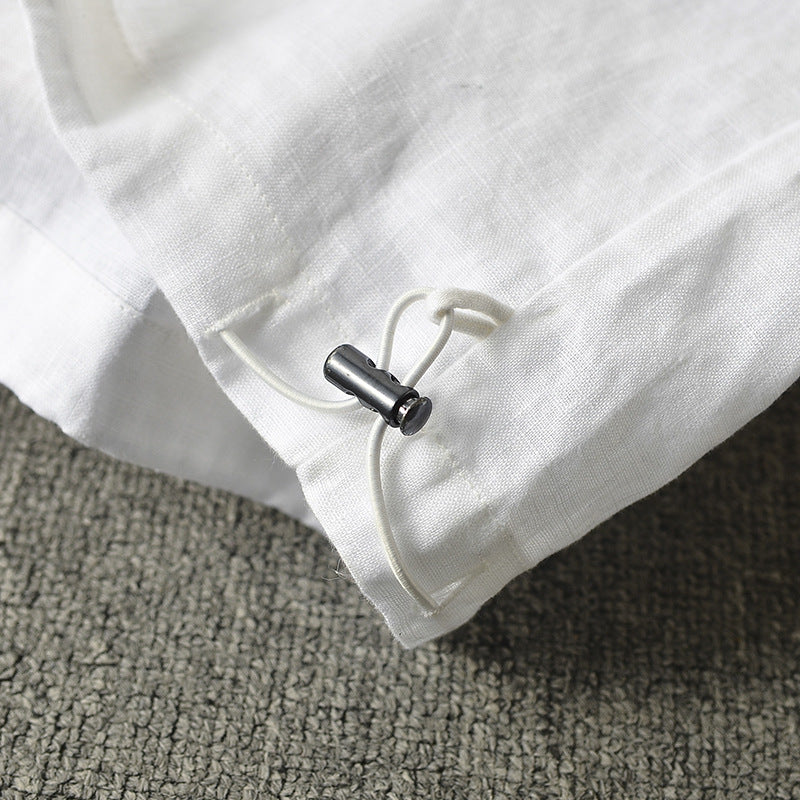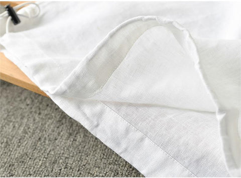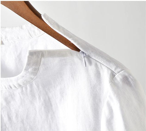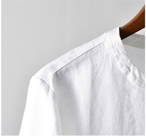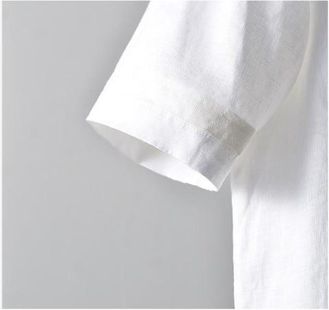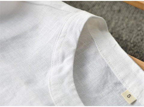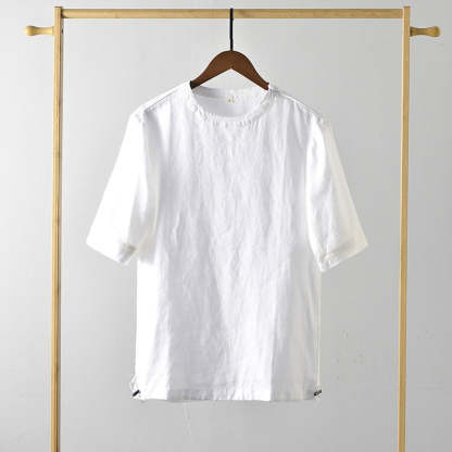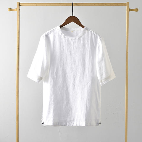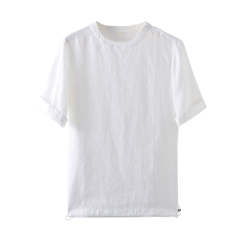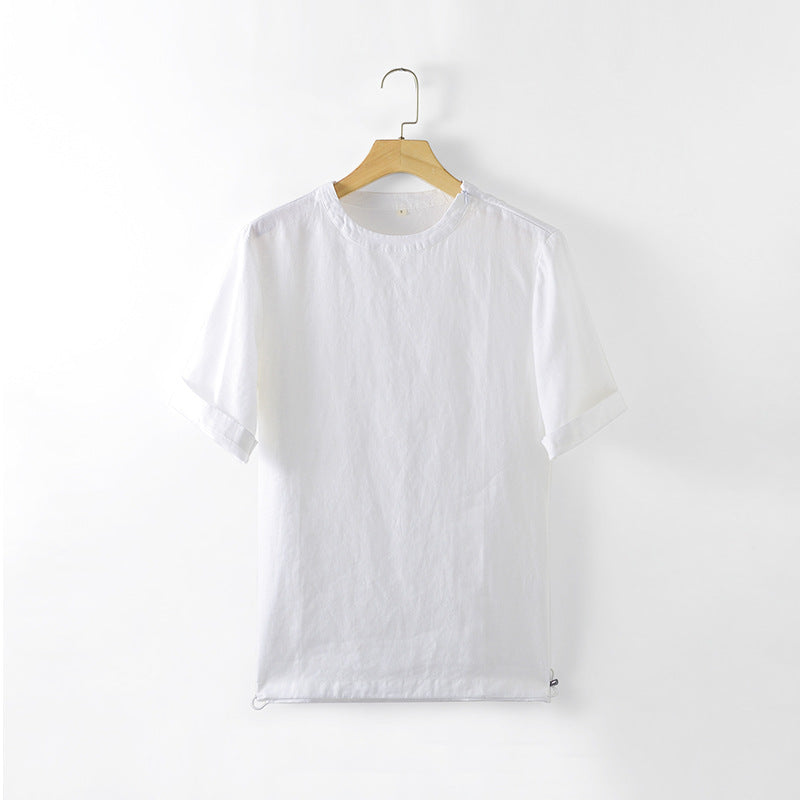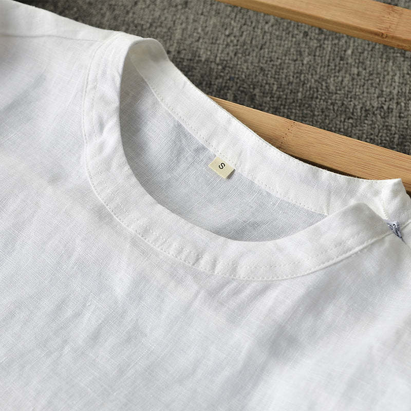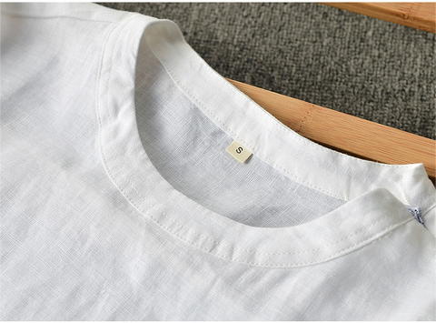 Men's Clothes Linen Crew Neck White Thin Linen Short Sleeve A050T