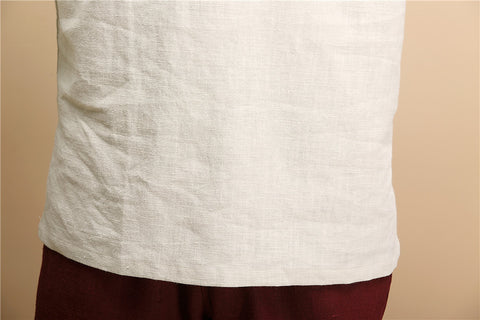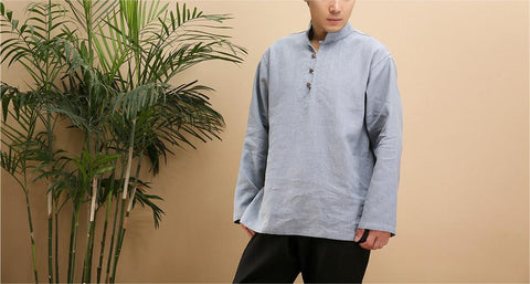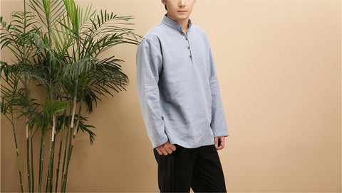 Men's Linen Casual Half Turtle Collar Long Sleeve Shirt M010