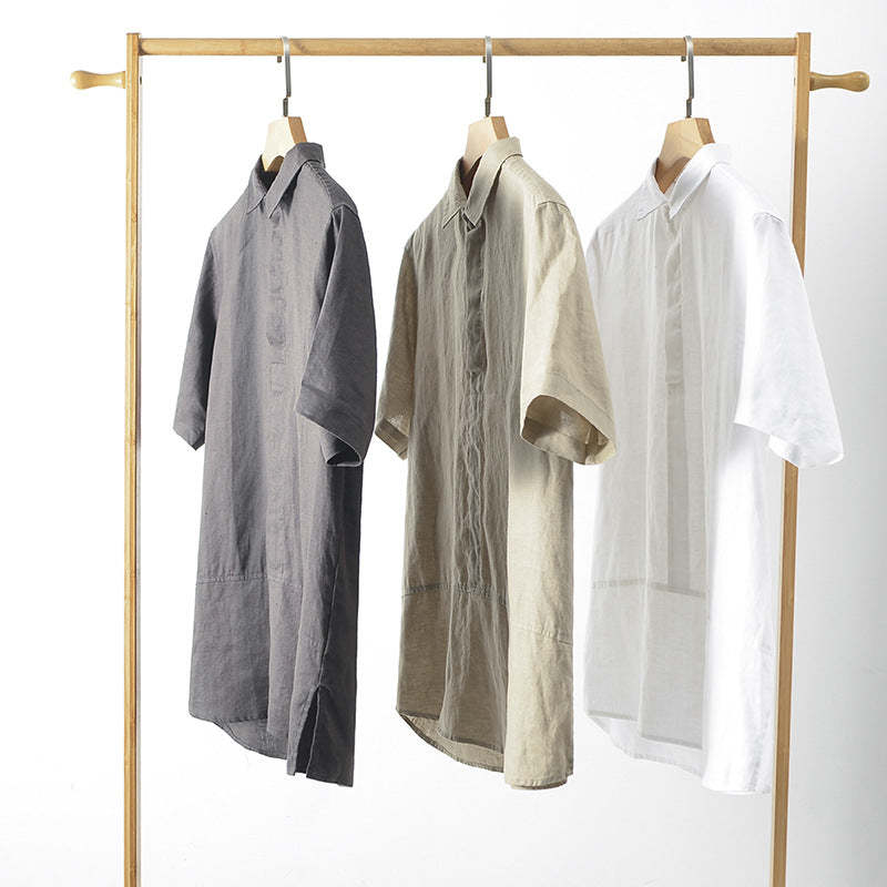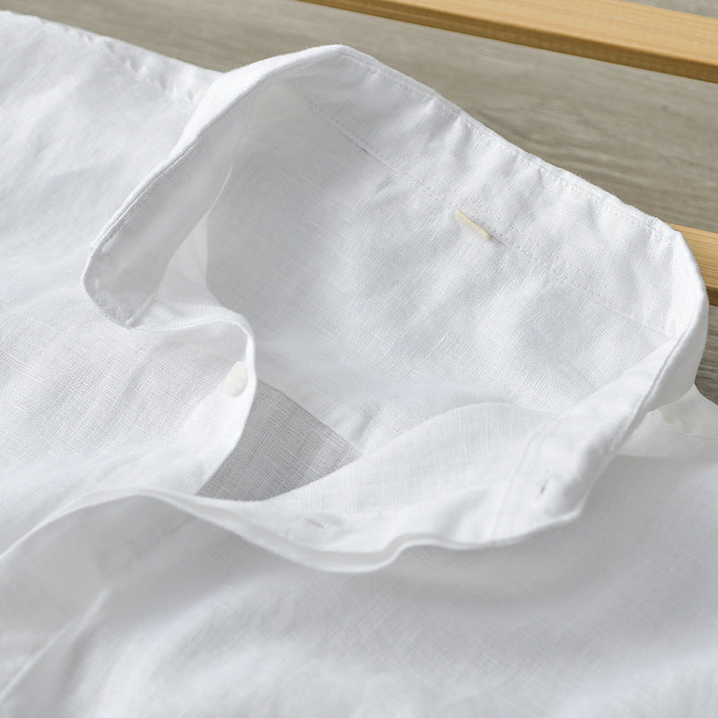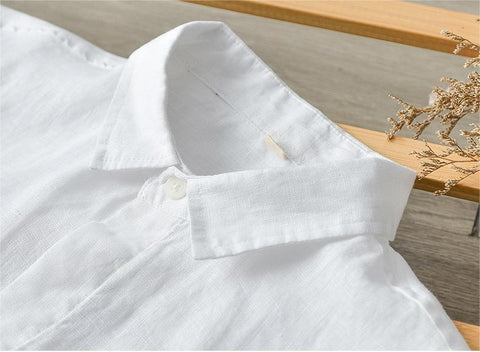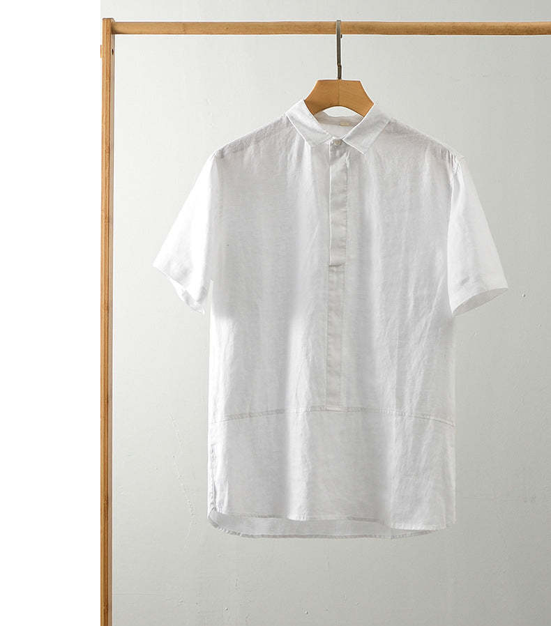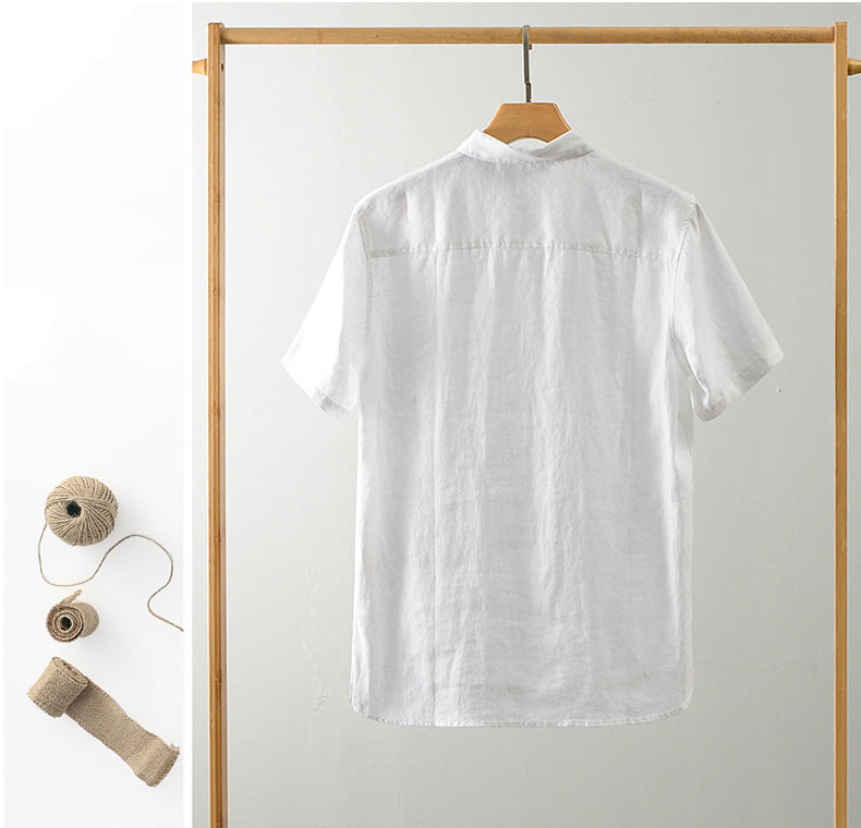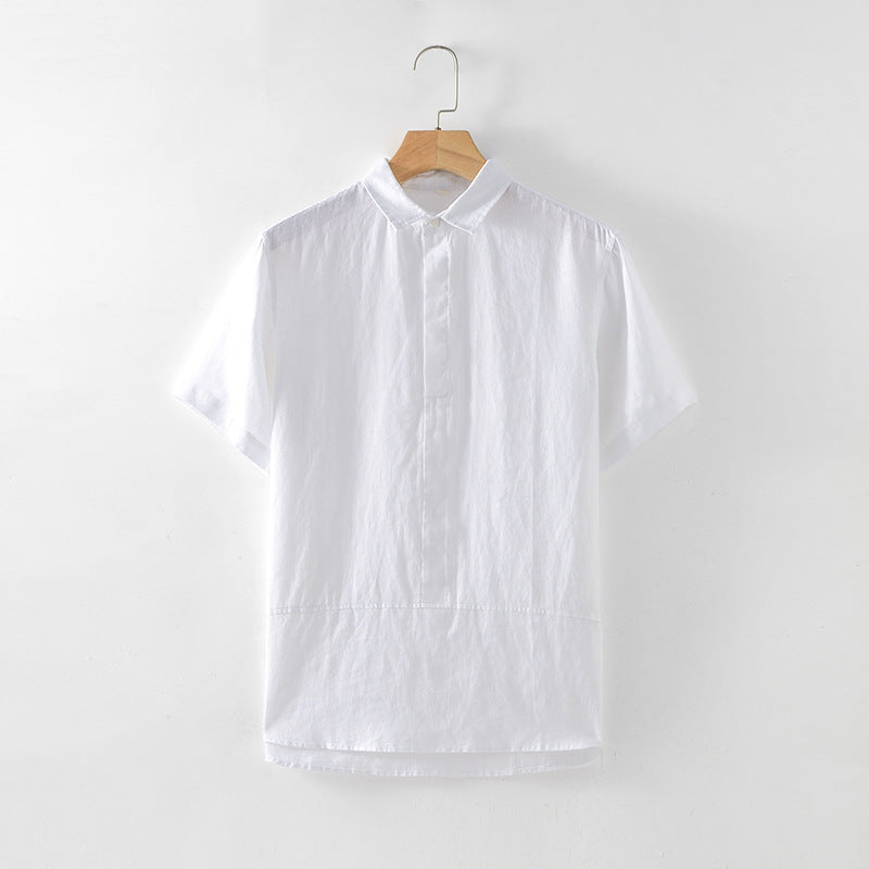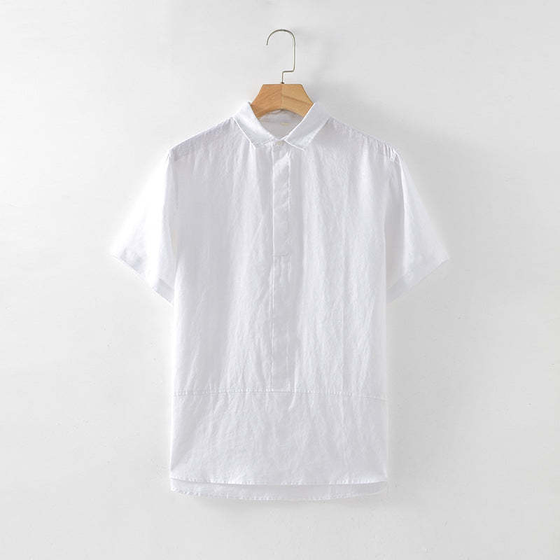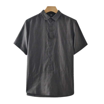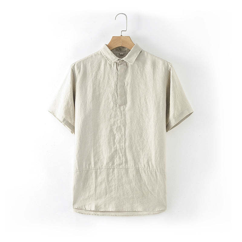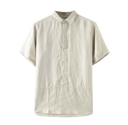 Men's Linen Casual Loose Lapel Short Sleeve Polo Shirt E020