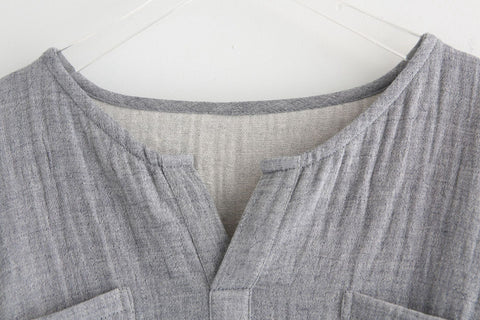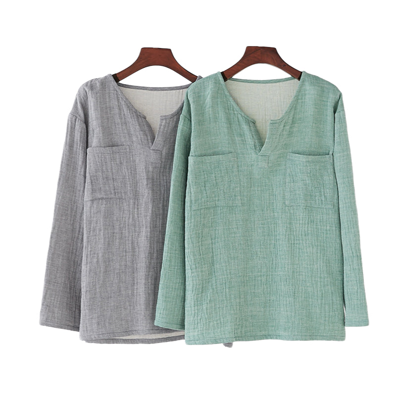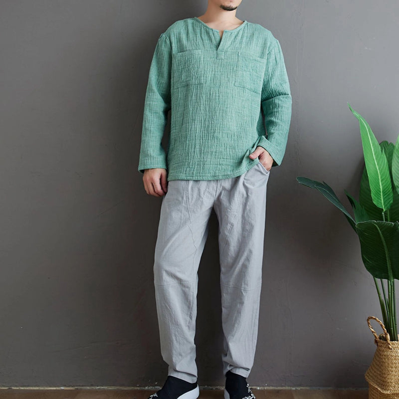 Men's Retro Linen Loose V-Neck T-Shirt M009